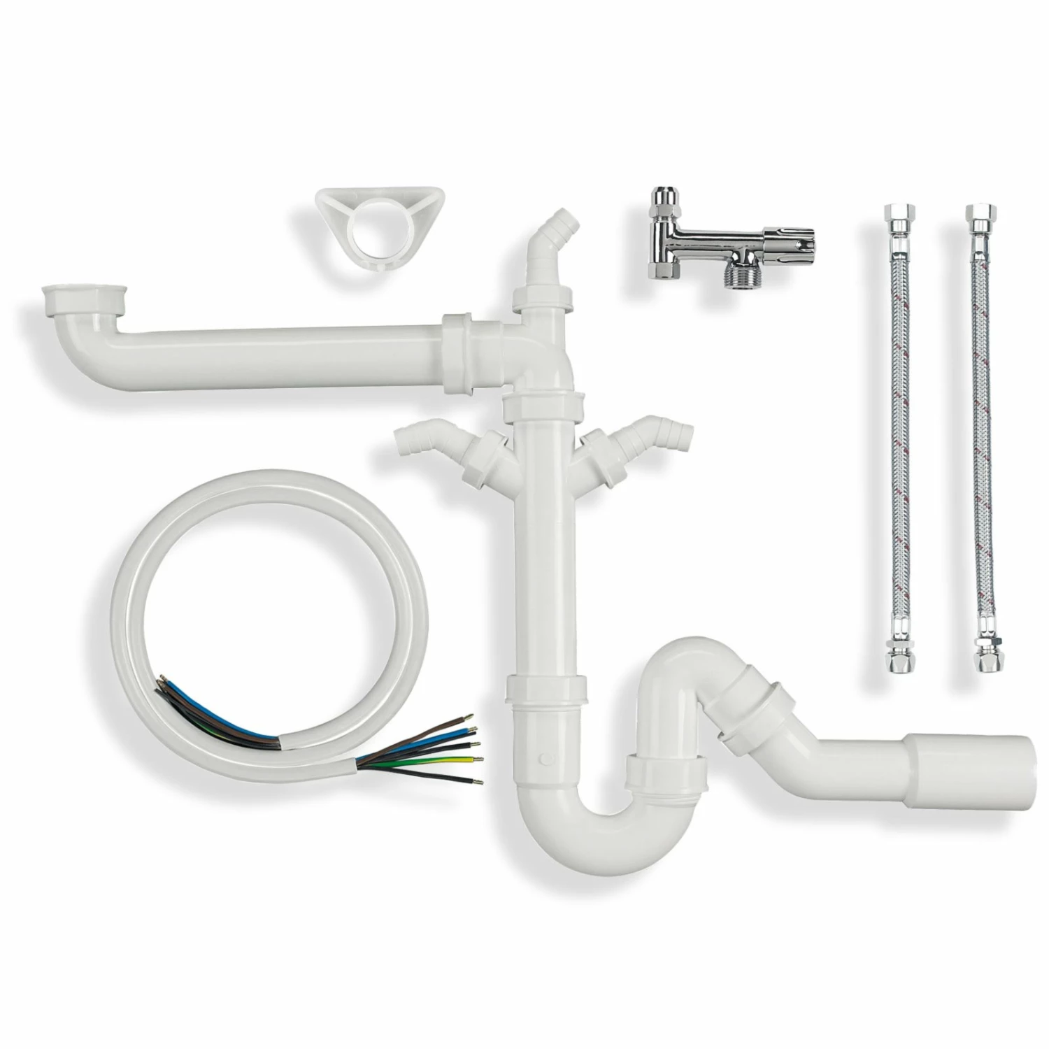 mit 3 Geräteanschlüsse und Rohrgeruchsverschluss - 2 flexible Wasseranschlussschläuche