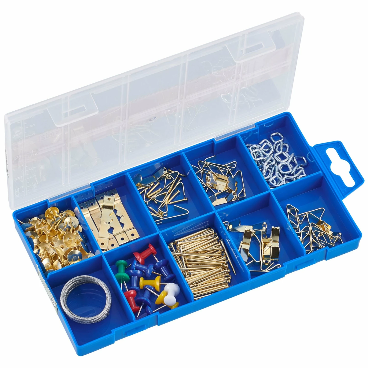 Mit diesem Bildhaken Sortimentskasten können Sie beliebig viele Bilderrahmen und Wanddekorationen aufhängen bzw. reparieren.