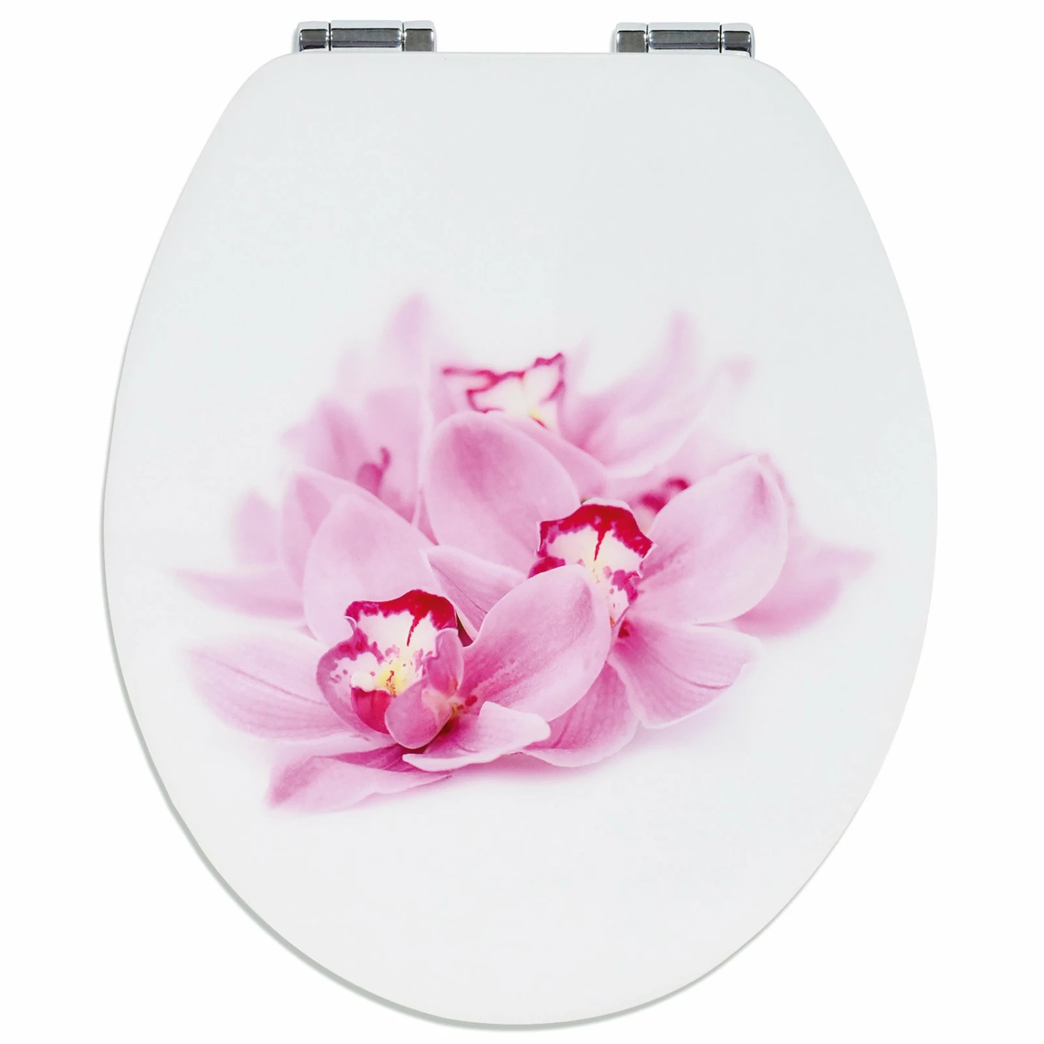 Der WC-Sitz ist mit einer tollen Blüte verziert. Er ist aus Acryl und im stylischen und beliebten Hochglanz. Eine Absenkautomatk ist ebenfalls vorhanden.