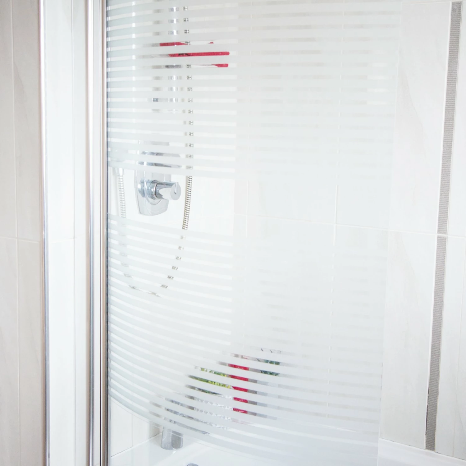Mit der d-c fix Klebefolie haben Sie im Handumdrehen einen Sichtschutz gezaubert. Ob nun im Bad an der Duschwand oder an Fenstern im ganzen Haus. Neugierige Blicke gehören mit der Fensterfolie der Vergangenheit an. Im klassischen Streifen-Design fügt es sich harmonisch in den jeweiligen Raum ein. Reinigen Sie einfach den zu beklebenden Untergrund und bringen die Folie mit Hilfe eines Rakels an. Da die Folie statisch haftend ist, ist die Anbringung ein Einfaches.
