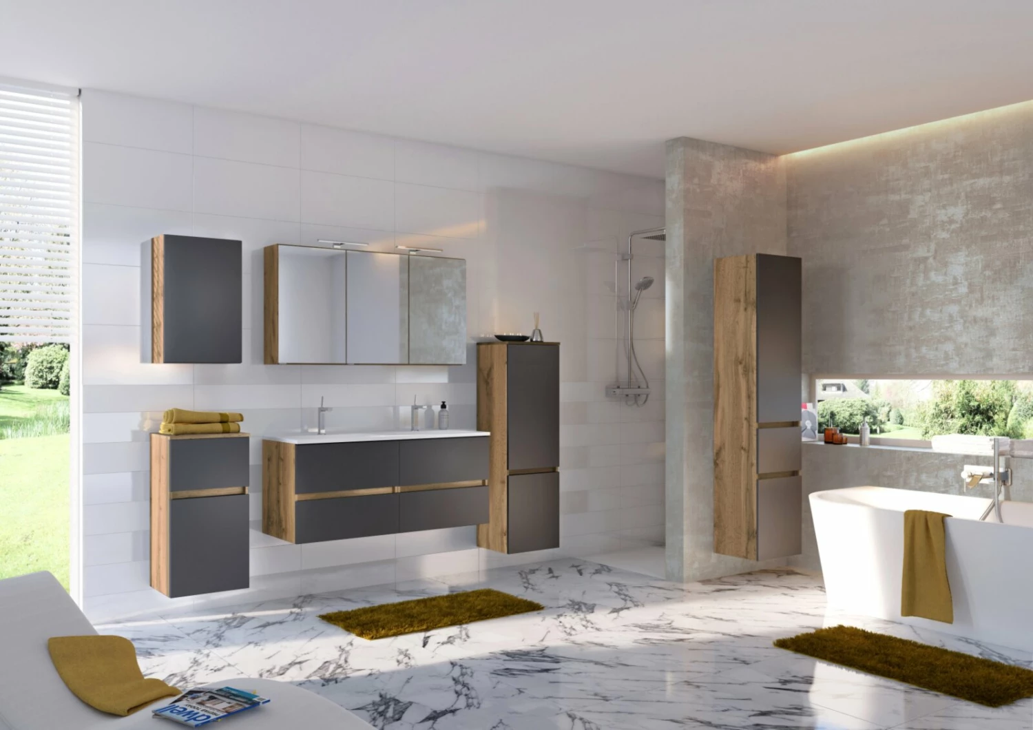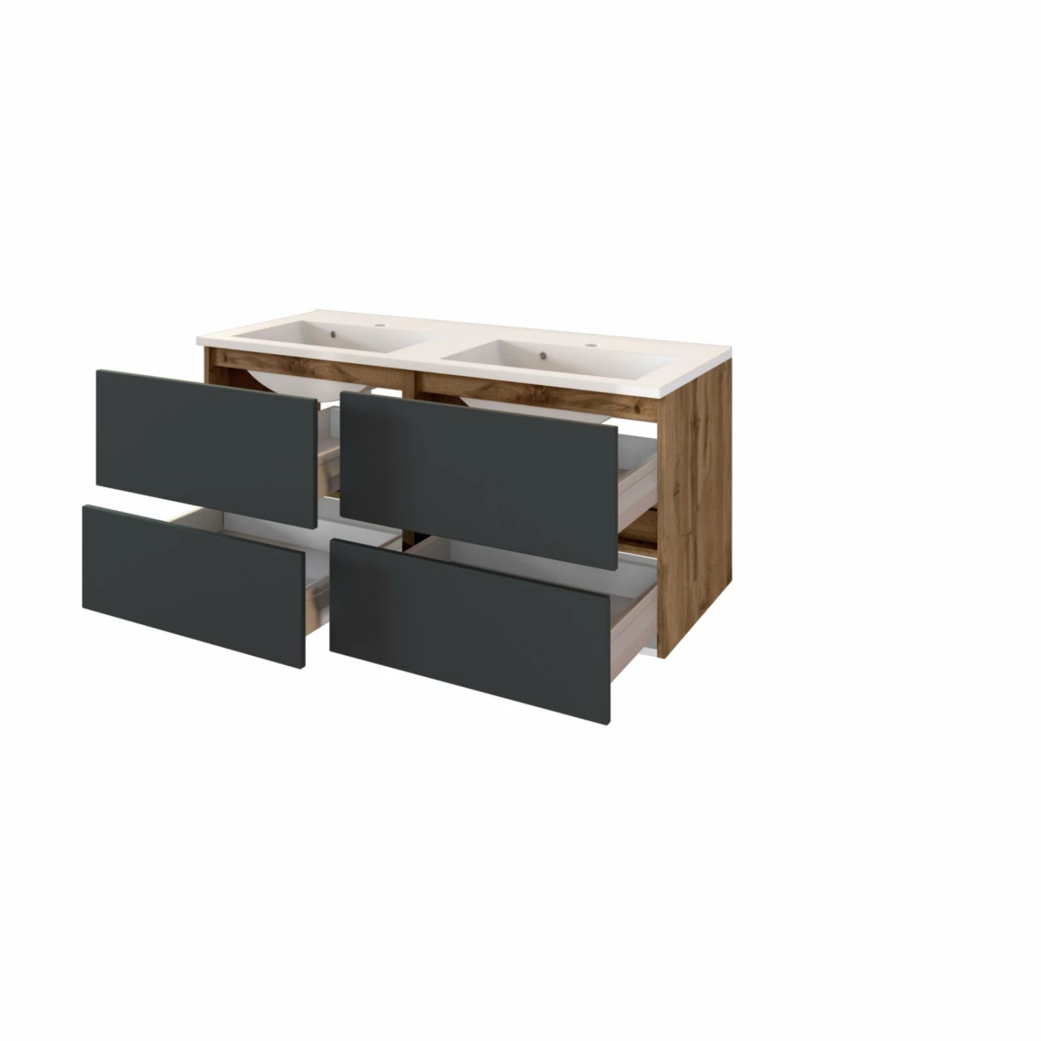 Doppelwaschtisch LUCCA – grau matt-Wotan Eiche – 120 cm