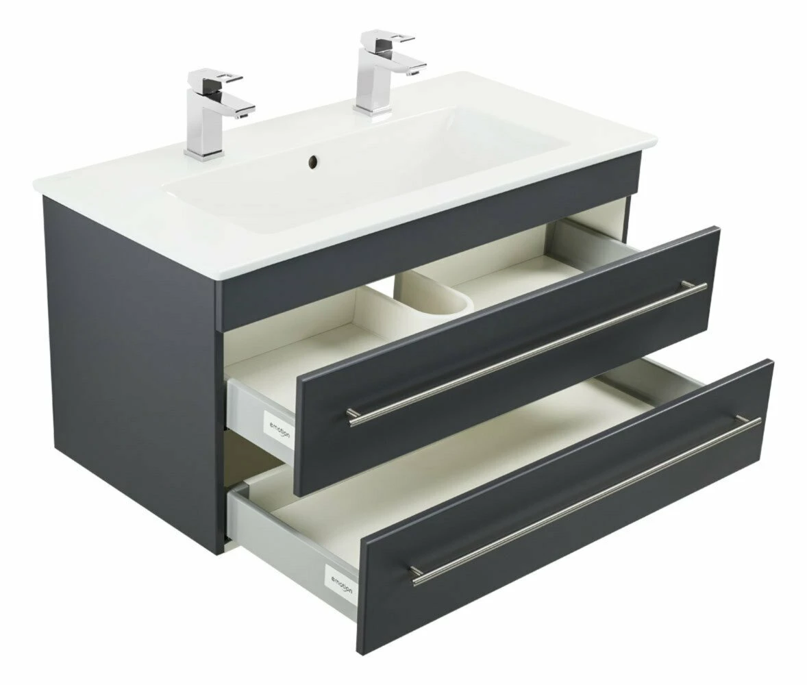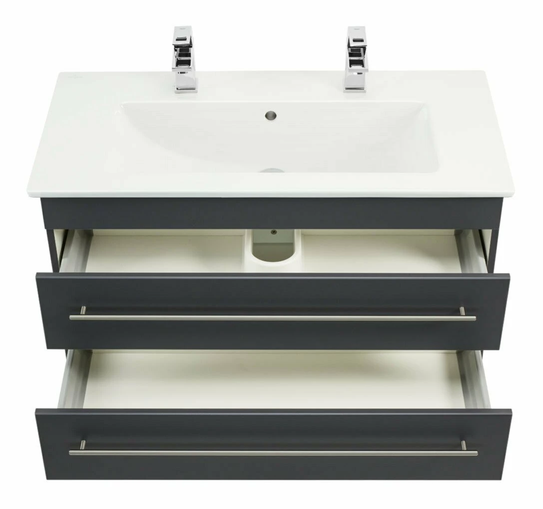Doppelwaschtisch VENTICELLO – anthrazit – mit Keramikbecken – 100 cm