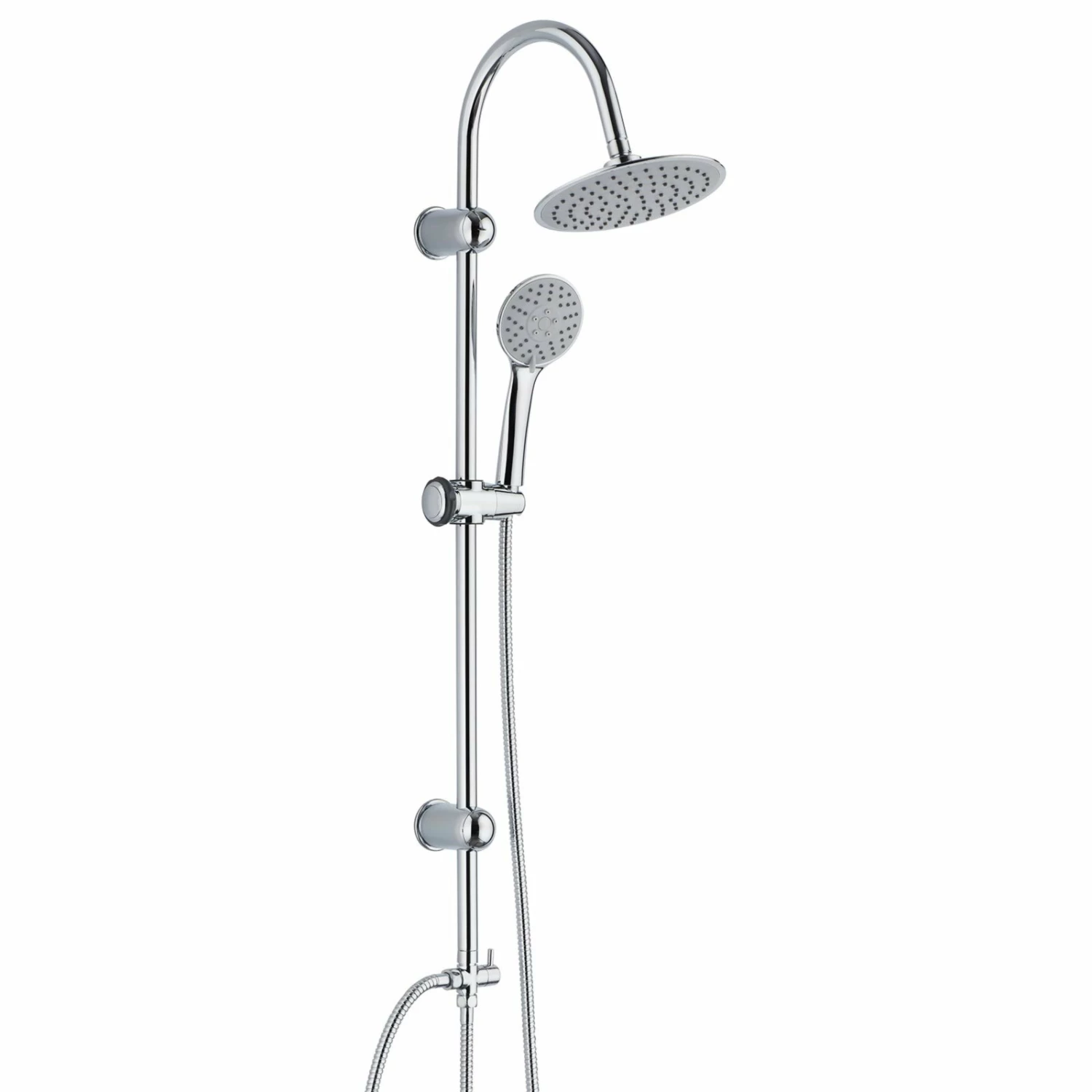 In edlem Chrom und im modernen Design präsentiert sich dieses Duschbrause-Set, bei dem die praktische Handbrause im Lieferumfang mit inbegriffen ist. Durch die höhenverstellbare Wandhalterung können bereits vorhandene Bohrlöcher praktischerweise genutzt werden.