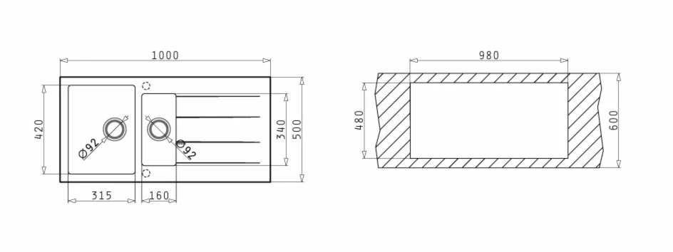 - Hahnloch: 1 + 1 vorgebohrt