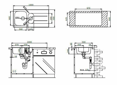 - Restebecken: BxHxT ca. 16,5 x 12 x 29 cm