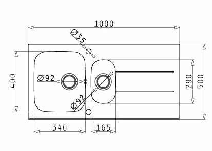 - Spülbecken: BxHxT ca. 34 x 18 x 40 cm