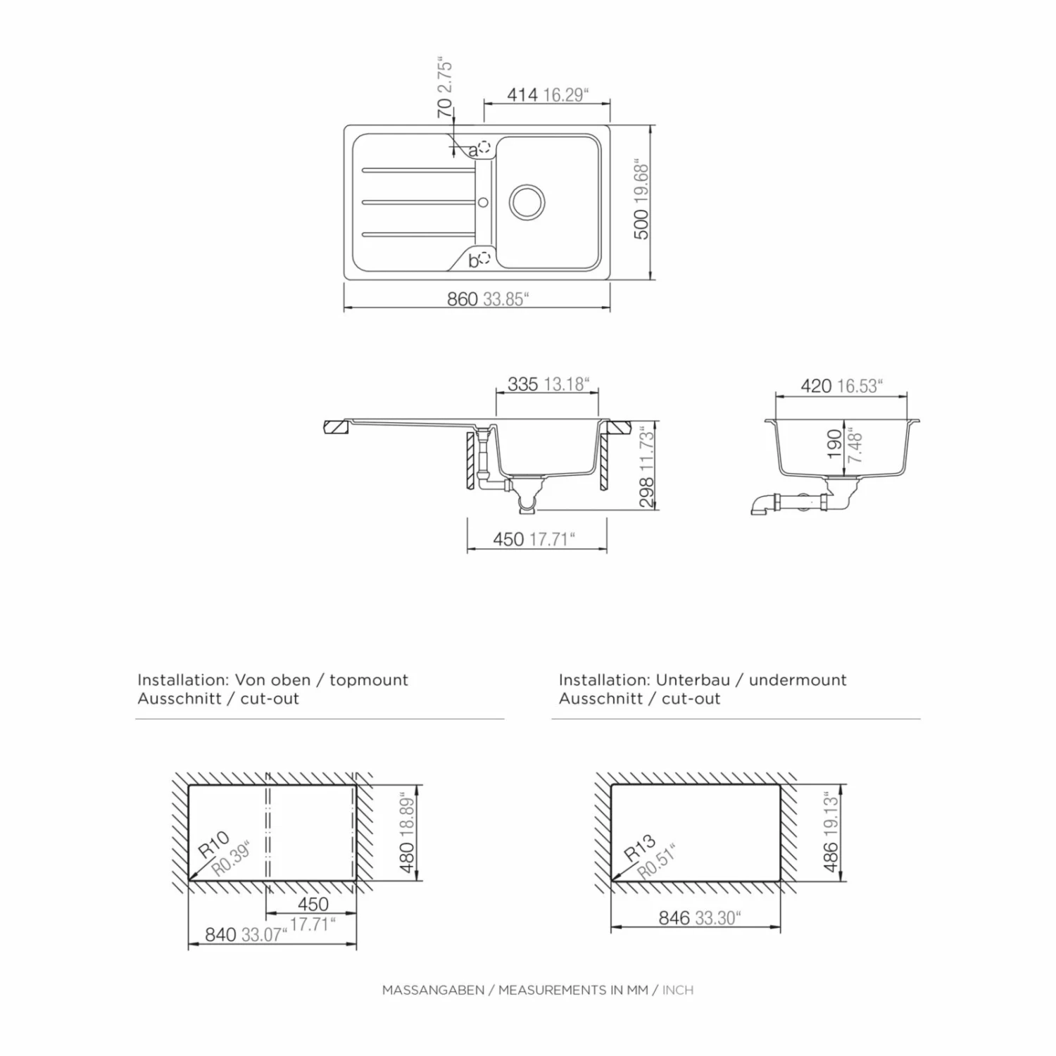Einbauspüle – Croma – Cristalite+ – 86×50 cm