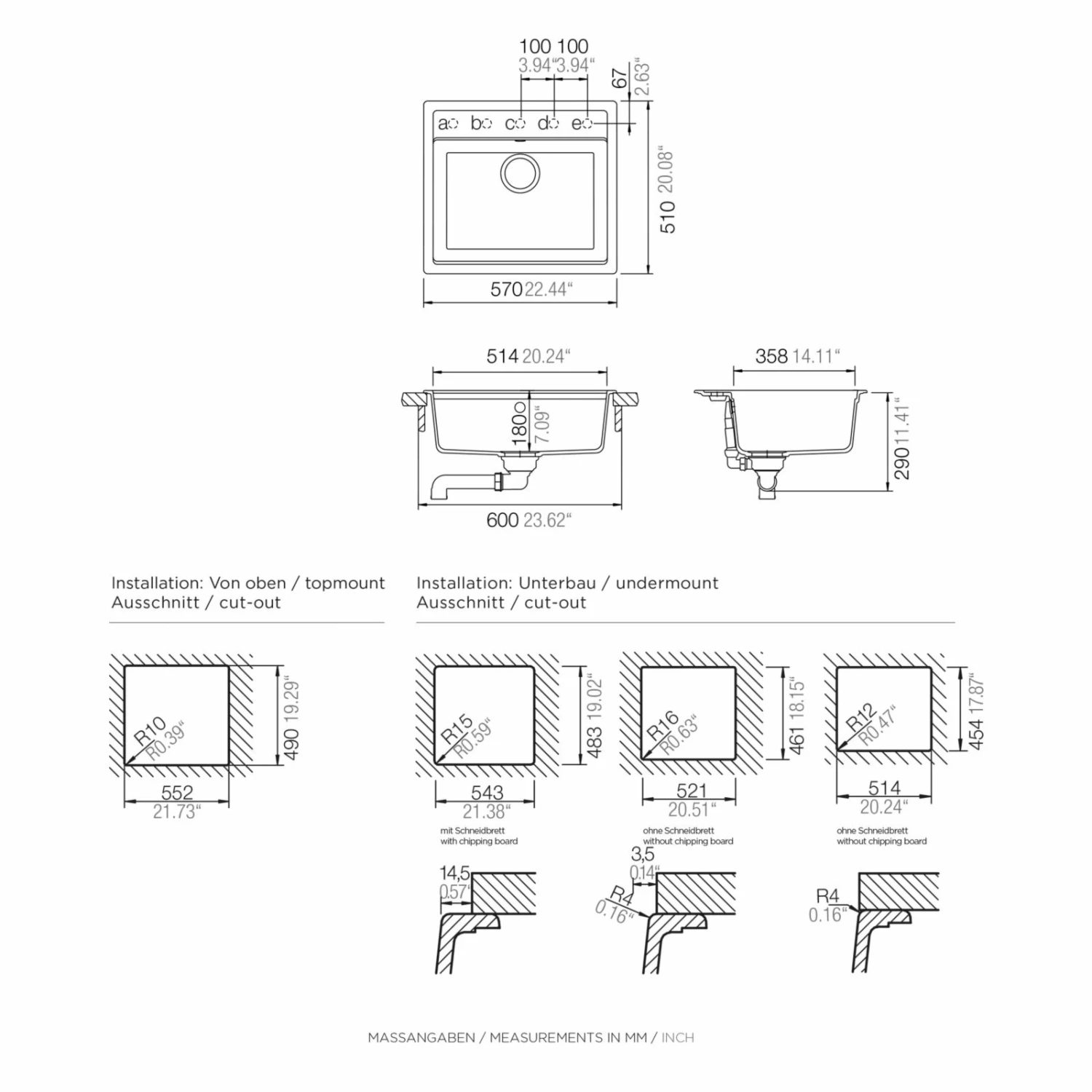 Einbauspüle – Inca – Cristalite – 57×51 cm