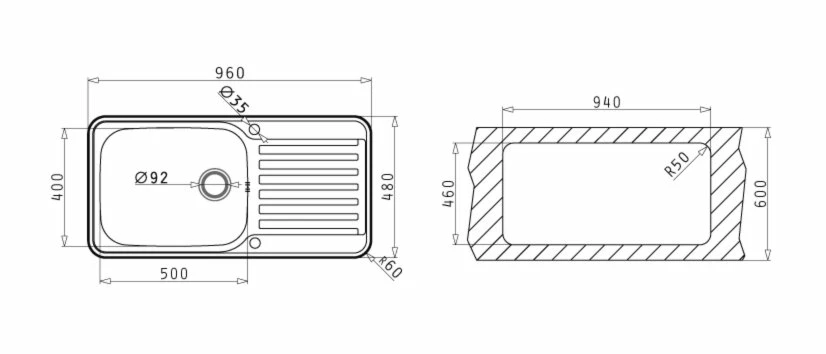 Diese Einbauspüle SPACE PLUS wurde aus poliertem Edelstahl gefertigt und lässt sich in fast jede Küche integrieren. Sie ist mit einer Abtropffläche und einem Becken mit den Maßen 50 x 40 x 20 cm ausgestattet. Das Befestigungsmateril ist im Lieferumfang mit inbegriffen.