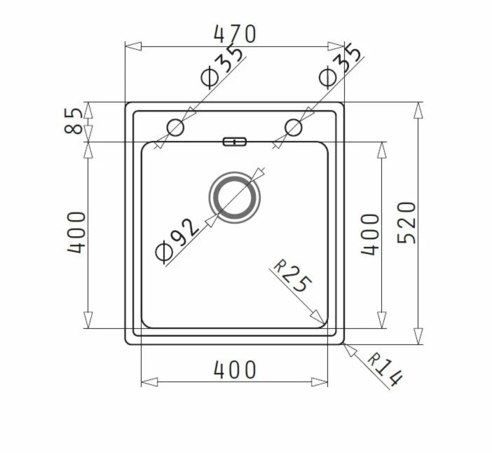 Die elegante Einbecken-Einbauspüle PELLA ohne Abtropffläche besteht aus Edelstahl und eignet sich zum flächenbündigen Einbau. Die Spüle verfügt über ein Becken, zwei Hahnlöcher sowie ein Drehexenter-Siebkorbventil.