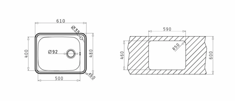 Einbecken-Einbauspüle SPACE PLUS – Edelstahl – Unterschränke ab 60 cm