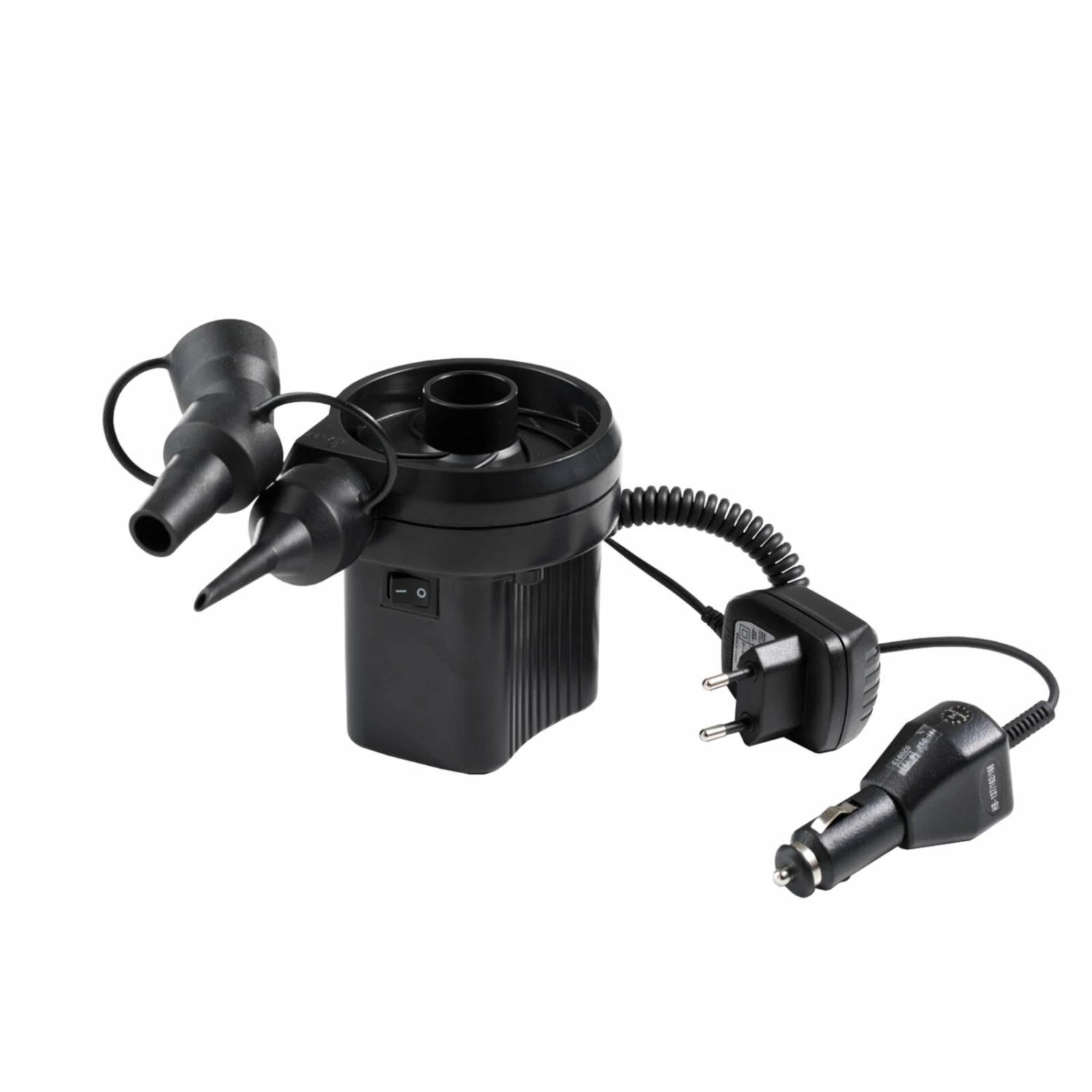Mit dieser elektronischen Kompressorpumpe in Schwarz ist das Auf- und Abpumpen von Luft besonders einfach. Mithilfe des Autoanschlusses kannst du die Pumpe praktischerweise überall einsetzen. Mit den verschiedenen Adaptern erhälst du den Anschluss an alle gängigen Ventilgrößen. Die Kabellänge von etwa 3 Metern ist ausreichend, sodass man auch weit entfernte Produkte aufblasen kann.