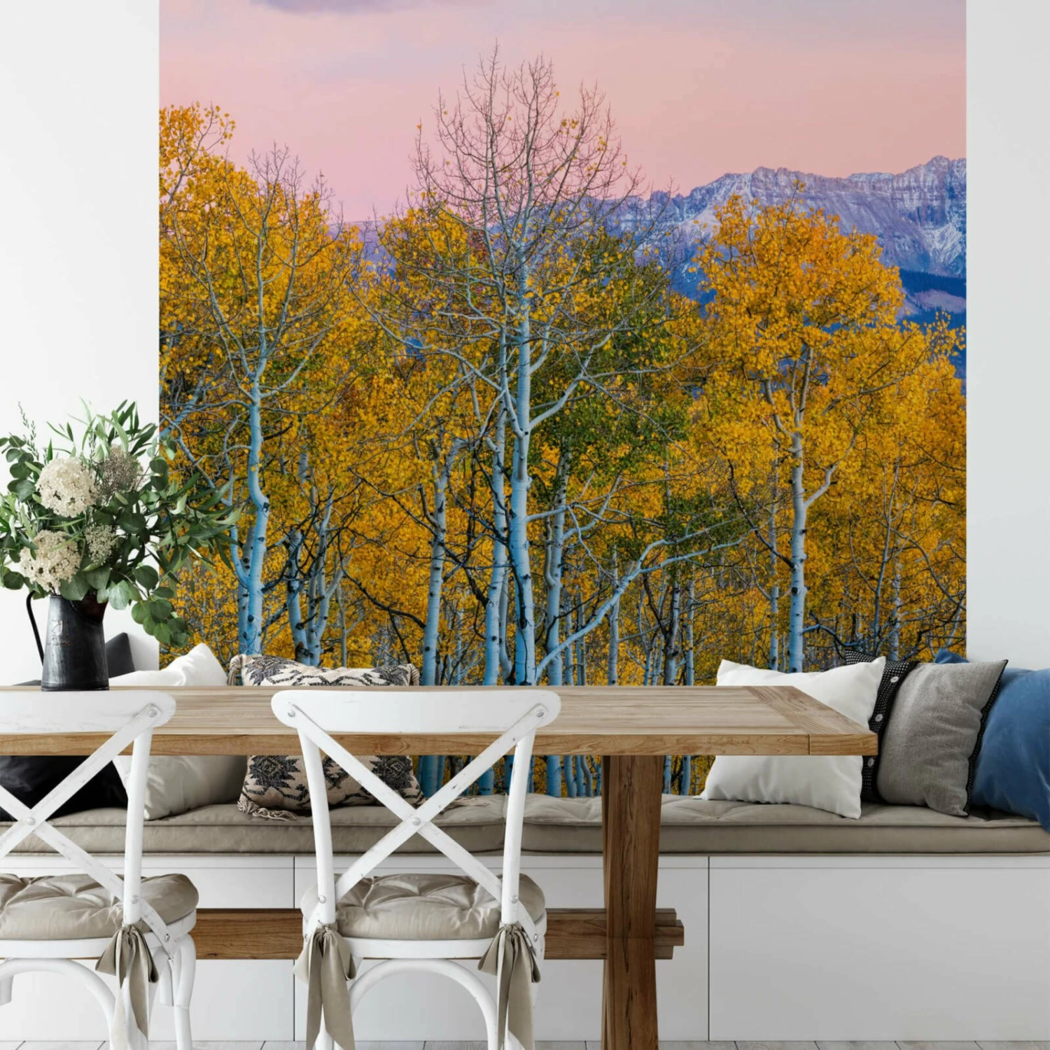 Diese stilvolle Birkenwald Fototapete in der Farbe Gelb sorgt für ein angenehmes Wohnambiente in Ihrem Zuhause. Das Trägermaterial dieser Fototapete ist ein Vlies. Sie hat die Maße 1,92 Meter x 2,6 Meter und ist waschbeständig, gut lichtbeständig und restlos trocken abziehbar.
