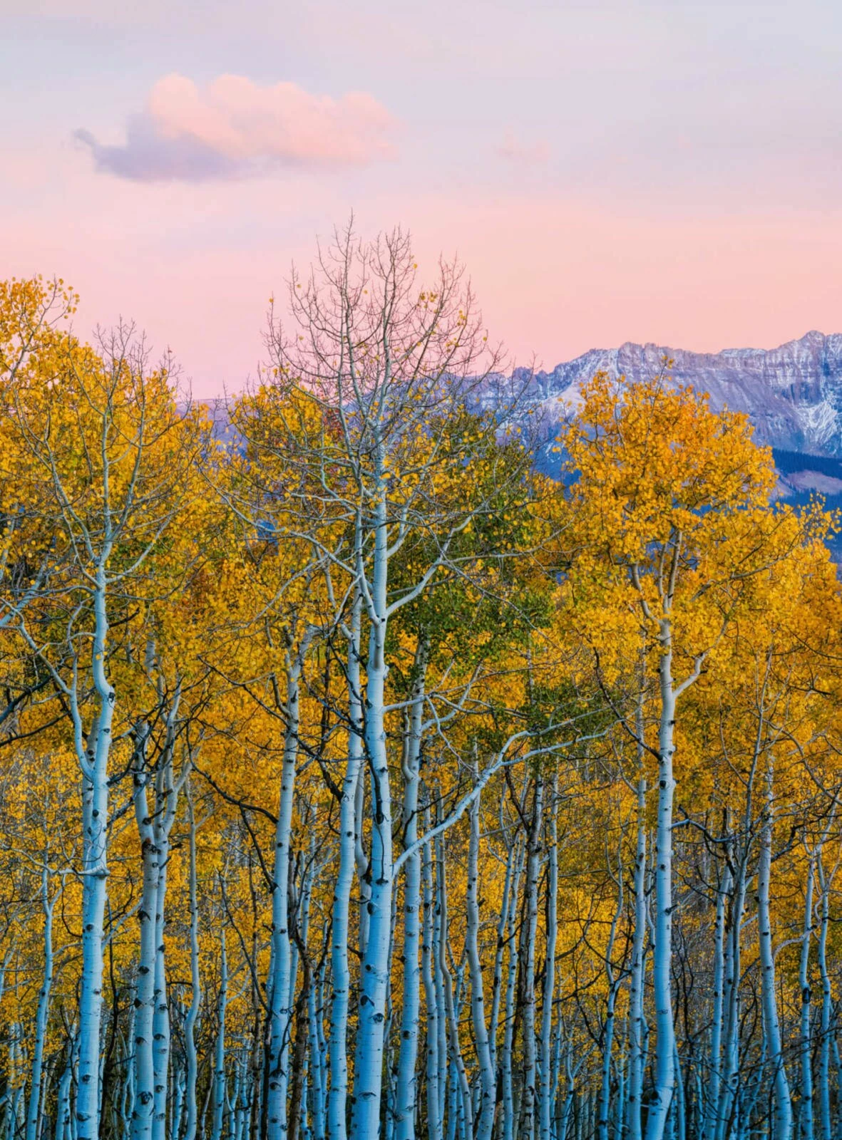 Fototapete DESIGNWALLS 2.0 – gelb-weiß – Birkenwald – 2,6 Meter