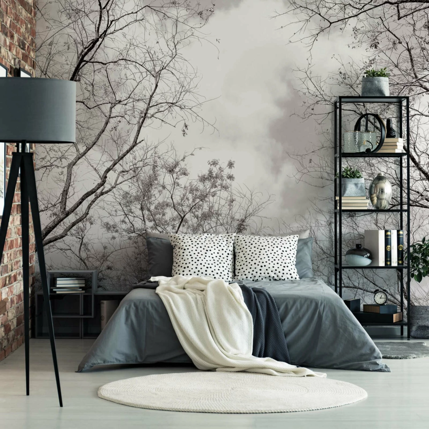Diese stilvolle Wald Fototapete in der Farbe Grau sorgt für ein angenehmes Wohnambiente in Ihrem Zuhause. Das Trägermaterial dieser Fototapete ist ein Vlies. Sie hat die Maße 3,84 Meter x 2,6 Meter und ist waschbeständig, gut lichtbeständig und restlos trocken abziehbar.