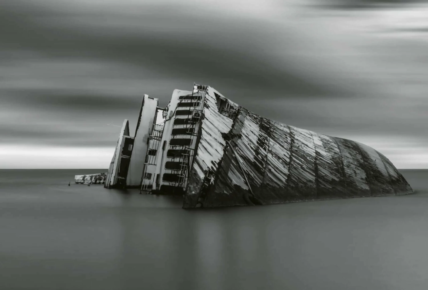 Fototapete DESIGNWALLS 2.0 – grau-weiß – Wrack – 2,6 Meter