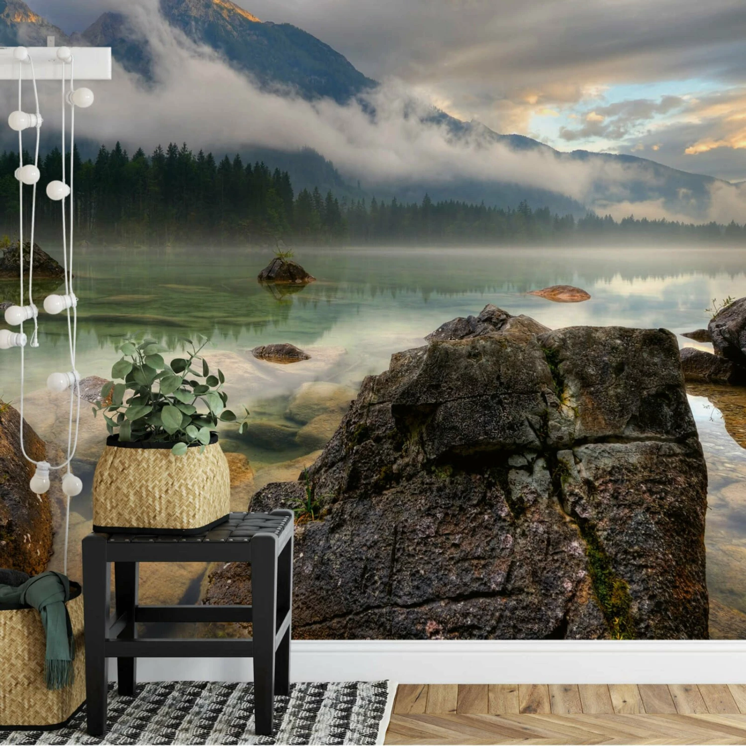 Diese stilvolle See Fototapete in der Farbe Grün sorgt für ein angenehmes Wohnambiente in Ihrem Zuhause. Das Trägermaterial dieser Fototapete ist ein Vlies. Sie hat die Maße 3,84 Meter x 2,6 Meter und ist waschbeständig, gut lichtbeständig und restlos trocken abziehbar.