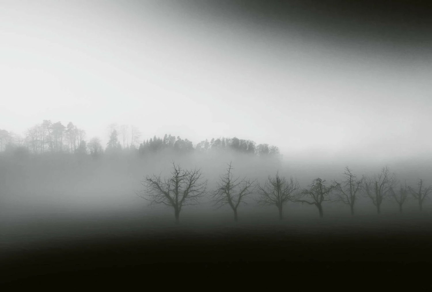 Fototapete DESIGNWALLS 2.0 – Nebel – schwarz-weiß – 2,6 Meter