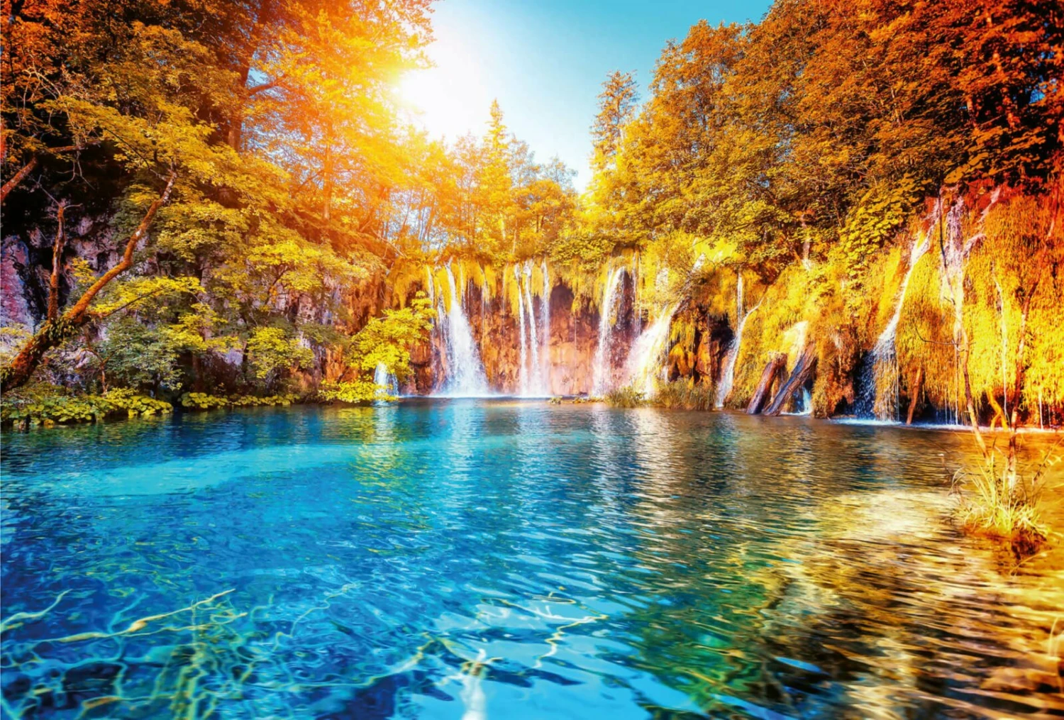 Fototapete DESIGNWALLS 2.0 – orange-gelb – Wasserfall – 2,6 Meter
