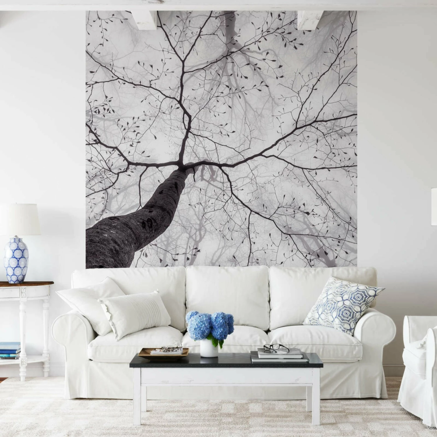 Diese stilvolle Baum Fototapete in der Farbe Schwarz sorgt für ein angenehmes Wohnambiente in Ihrem Zuhause. Das Trägermaterial dieser Fototapete ist ein Vlies. Sie hat die Maße 1,92 Meter x 2,6 Meter und ist waschbeständig, gut lichtbeständig und restlos trocken abziehbar.