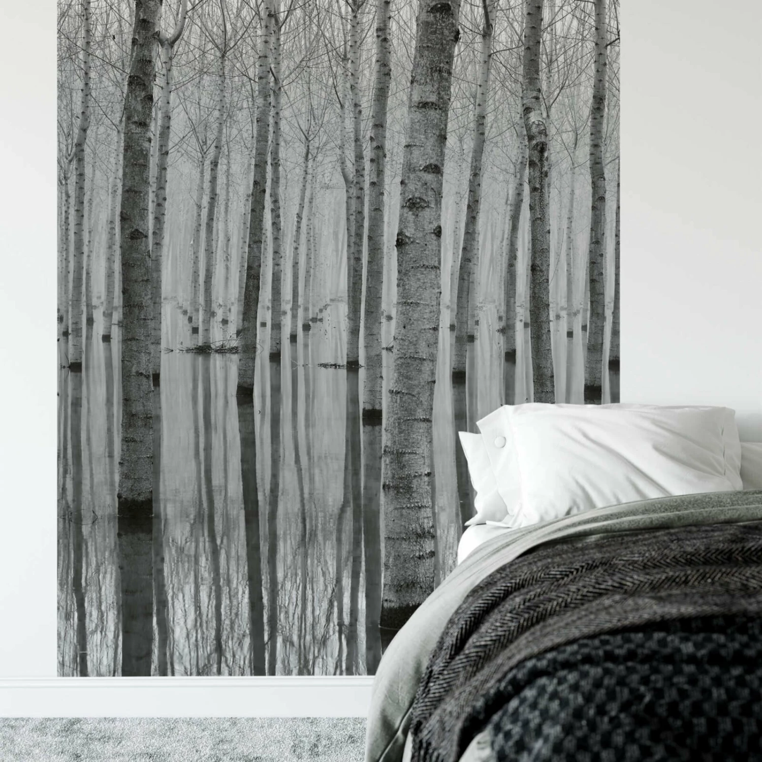 Fototapete DESIGNWALLS 2.0 – schwarz-weiß – Birkenwald – 2,6 Meter
