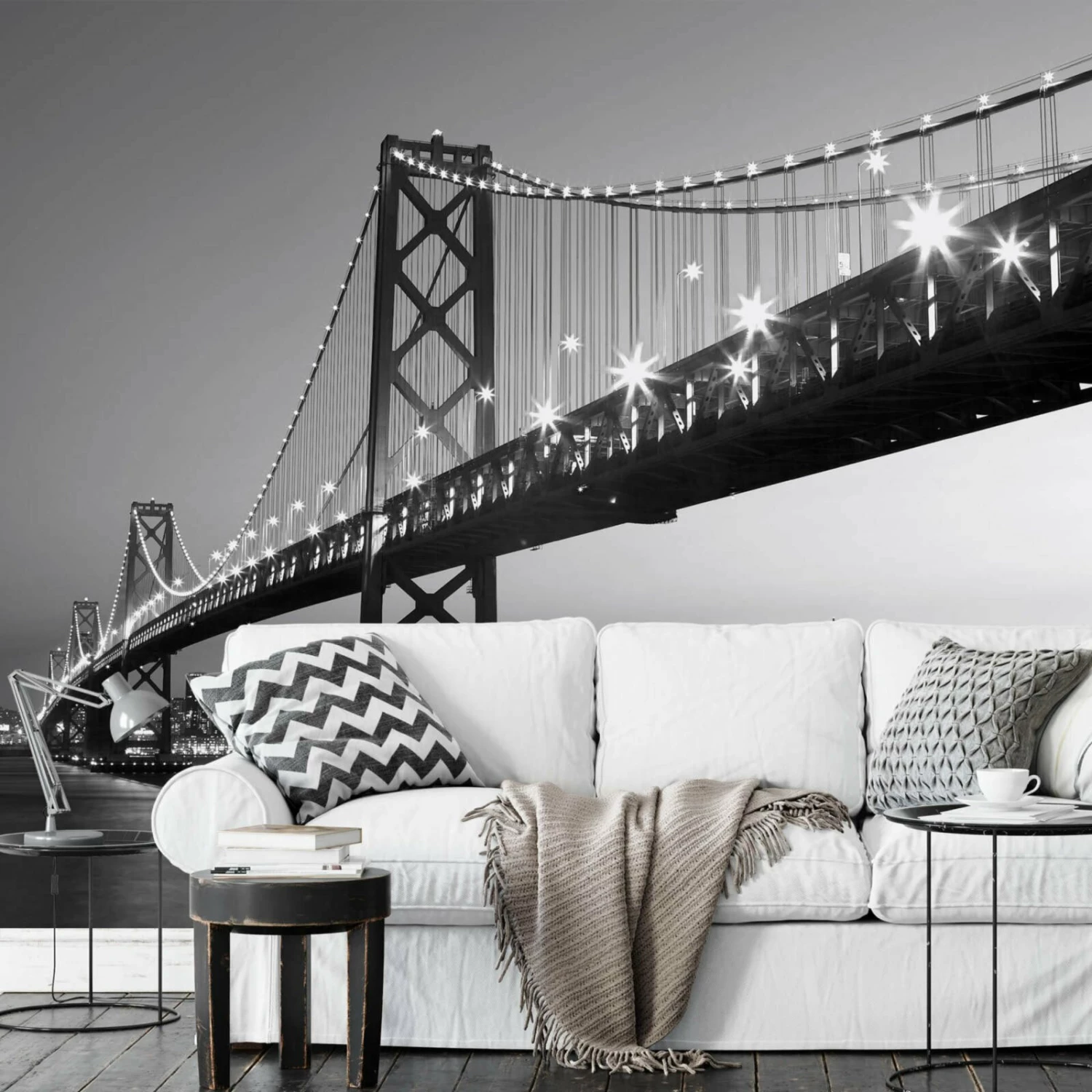 Diese stilvolle Skyline Fototapete in der Farbe Schwarz sorgt für ein angenehmes Wohnambiente in Ihrem Zuhause. Das Trägermaterial dieser Fototapete ist ein Vlies. Sie hat die Maße 3,84 Meter x 2,6 Meter und ist waschbeständig, gut lichtbeständig und restlos trocken abziehbar.