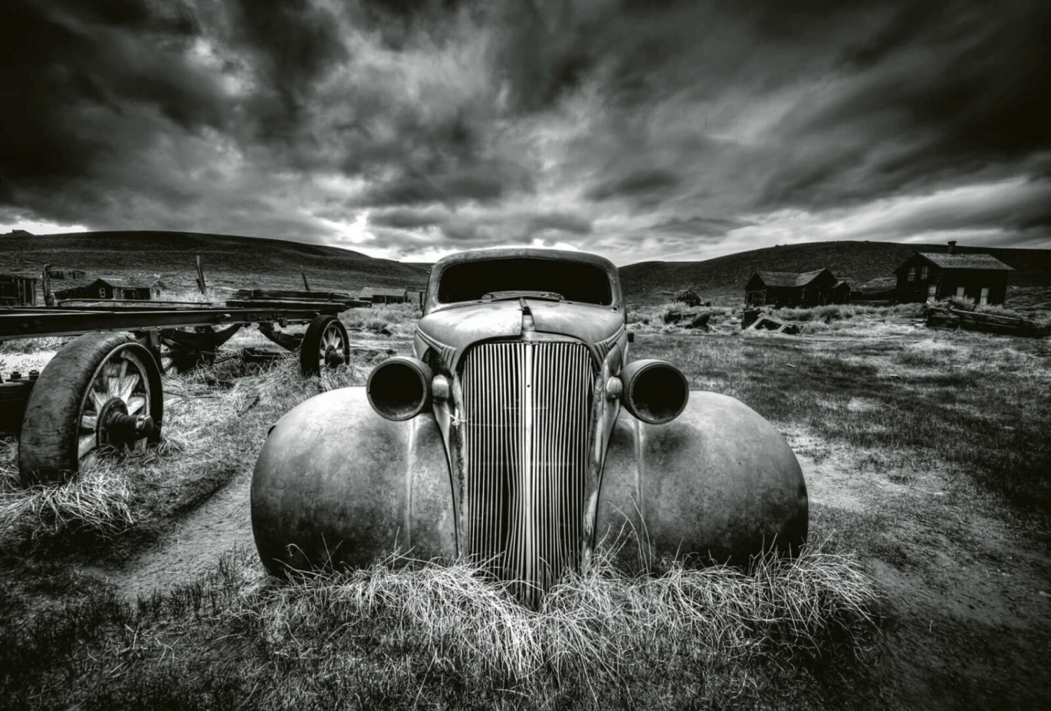 Fototapete DESIGNWALLS 2.0 – schwarz-weiß – Oldtimer – 2,6 Meter