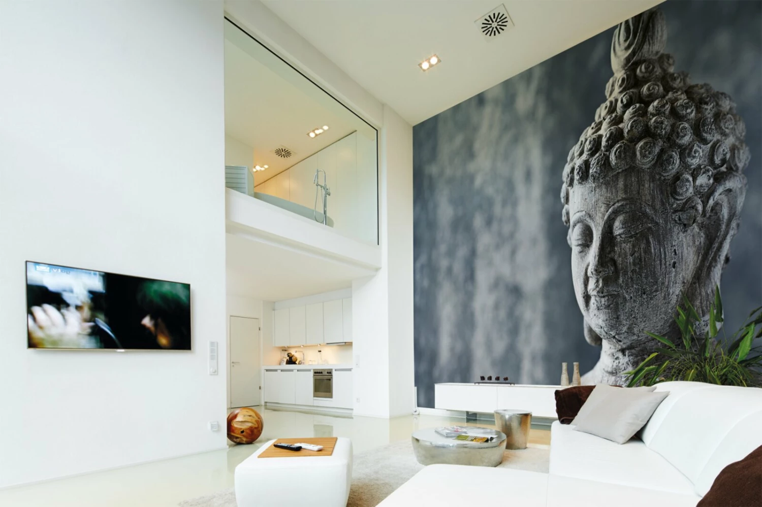 Fototapete DESIGNWALLS – blau-grau – Buddha – 2,55 Meter