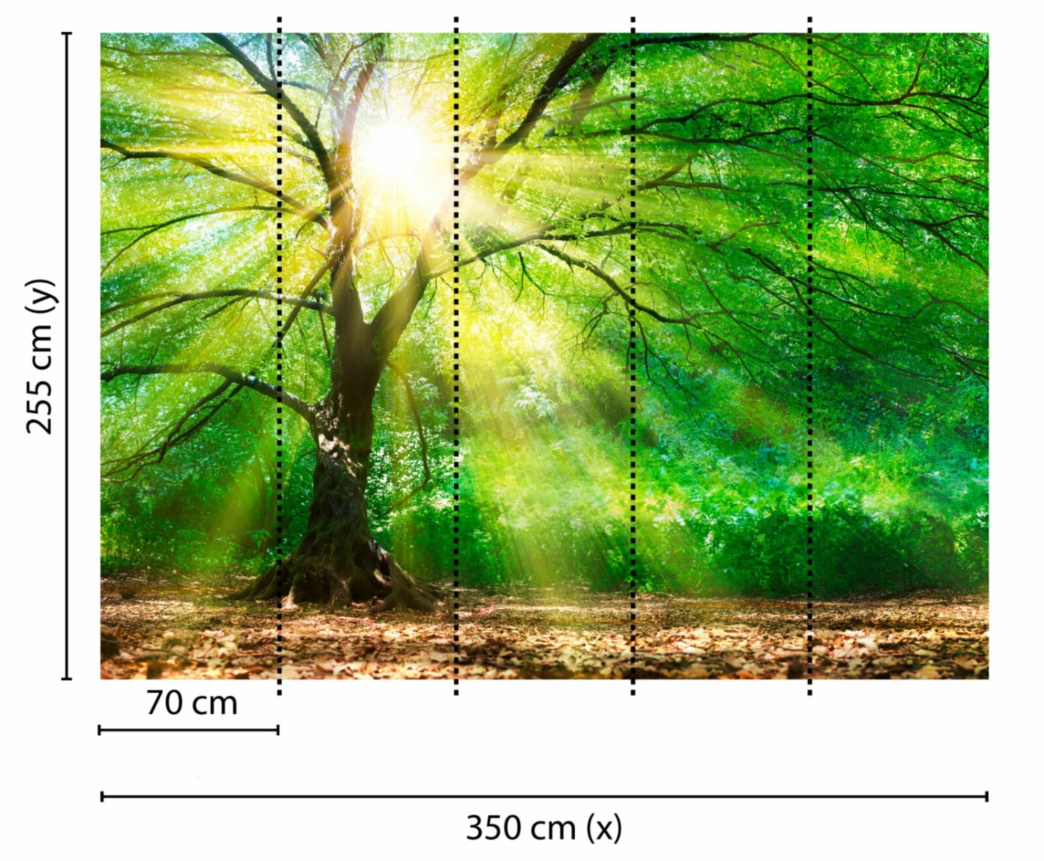 Mit unserer geschmackvollen Wald Fototapete in Grün sorgen Sie für einen Eyecatcher an Ihrer Wand, so bekommt Ihr Zuhause einen ganz neuen individuellen Stil. Die Digitaldrucke lassen sich einfach verarbeiten und haben einen hochwertigen Vliesträger. Die Maße der Tapete sind 3,50 Meter x 2,55 Meter. Sie ist waschbeständig, gut lichtbeständig und restlos trocken abziehbar. Der bei dieser Tapete verwendete Vliesträger ist FSC-Mix zertifiziert. Der Zusatz Mix steht für die Verwendung von Holz aus FSC-zertifizierten Wäldern und den Einsatz von Recyclingmaterial.