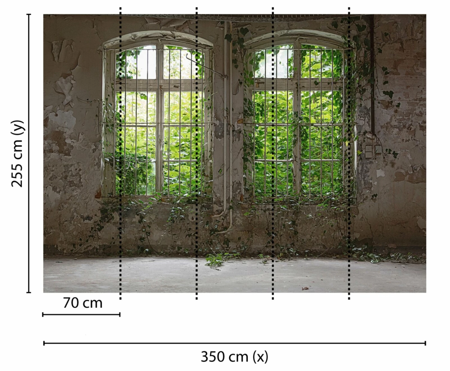 Fototapete DESIGNWALLS – grün-grau – Fenster – 2,55 Meter
