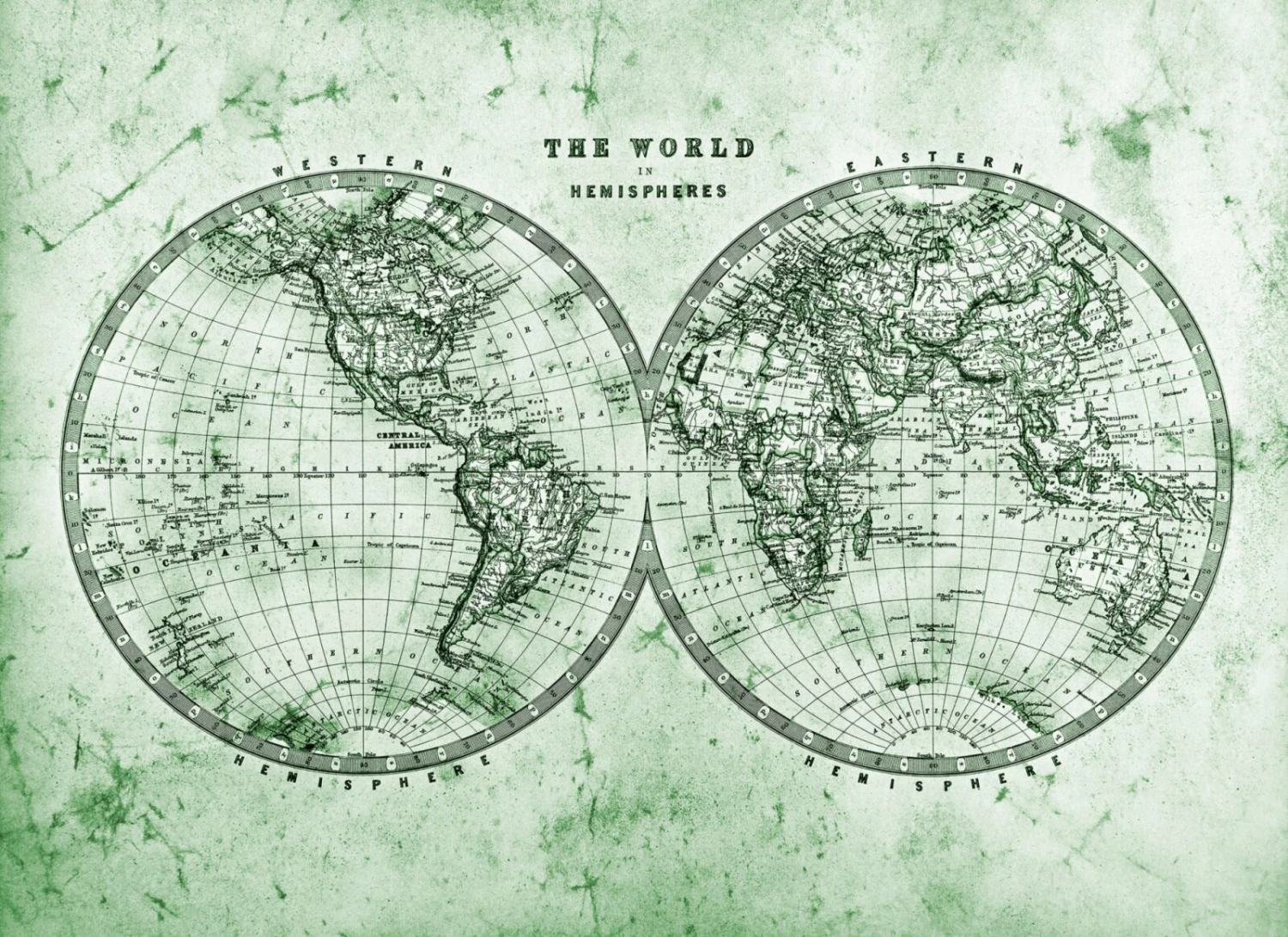 Fototapete DESIGNWALLS – grün-grau – Weltkarte – 2,55 Meter