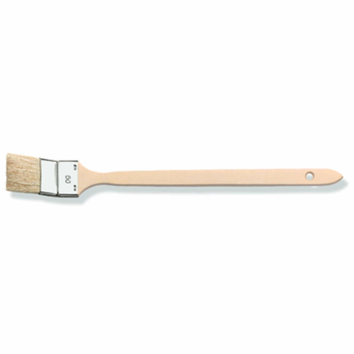Heizkörperpinsel mit Holzstiel und Weißblech-Zwinge. Die Borsten mit einer Länge von 44 mm sind reine Kunstborsten mit einer einfachen Stärke.
