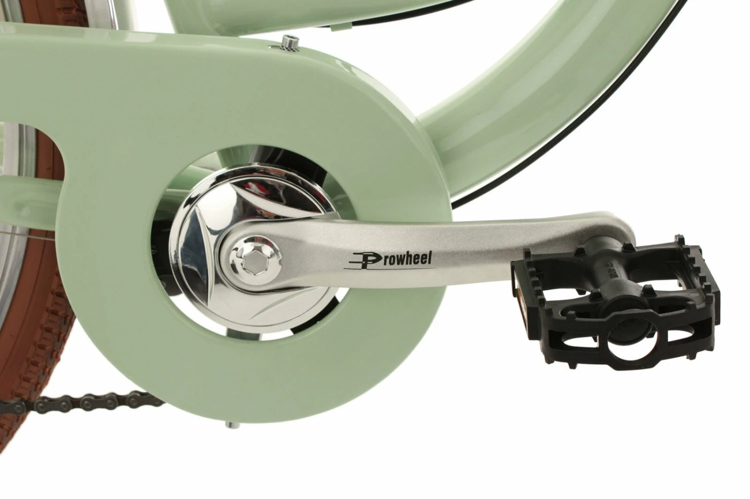 Der Rahmen des Fahrradmodelles EDEN im frischen, modenen Minzgrün zieht die Blicke auf sich. Das Design des Fahrrads ist ideal für Cityfahrten, wie zum Beispiel zur Arbeit oder zum Einkaufen. Für eine bequeme Sitzposition und einen leichten Aufstieg sorgt der Tiefeinsteigerstahlrahmen in Kombination mit dem gefederten Citysattel sowie dem gebogenen Lenker. Das Rad ist komplett ausgestattet: Neben der 6-Gang-Schaltung, hat es auch eine Lichtanlage, so dass Sie auch bei Dunkelheit sicher vorankommen.