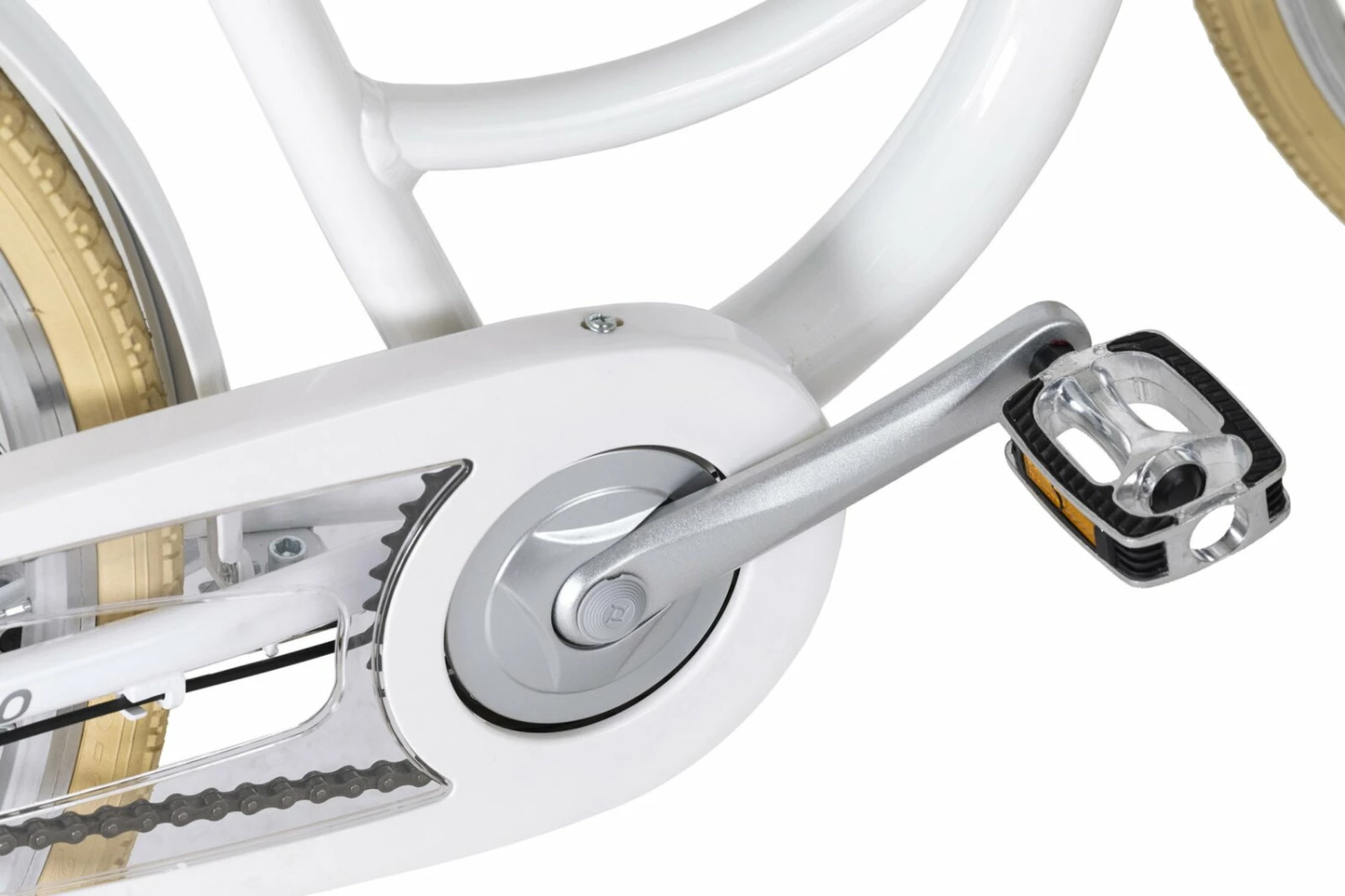 Schickes und modernes Fahrrad? Dann ist das Fahrrad „Milano DaCapo“ von KS Cycling genau das Richtige! Auf dem weißen Fahrrad kombiniert mit beigen Akzenten ziehst du alle Blicke auf dich. Doch das Fahrrad punktet nicht nur optisch, es verfügt über eine 3-Gang-Schaltung, somit ist komfortables Fahren garantiert. Zudem verfügt es Aluminium V-Bremsen, welche für wichtige Verzögerung sorgen. Mit dem StVZo-konformen Fahrrad kannst du sofort losfahren!