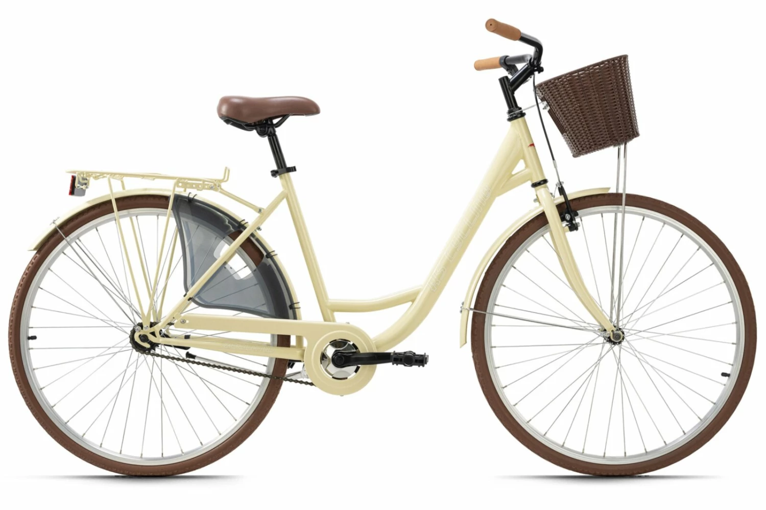 Das schöne Fahrrad überzeugt mit seinem puristischen Charme und als pflegeleichtes Fahrrad. Die klassische Ausstattung ohne Gangschaltung, Beleuchtung und mit einer Rücktrittsbremse macht das Cityrad zum wartungsarmen und zuverlässigen Begleiter für alltägliche Fahrten, wie zum Einkaufen. Die Ausstattung mit einem Frontkorb ist gerade dabei besonders hilfreich. Dazu kommt die für Hollandräder typische, angenehme, aufrechte Sitzweise, die in Kombination mit dem gut gepolsterten Citysattel für Fahrfreude sorgen.