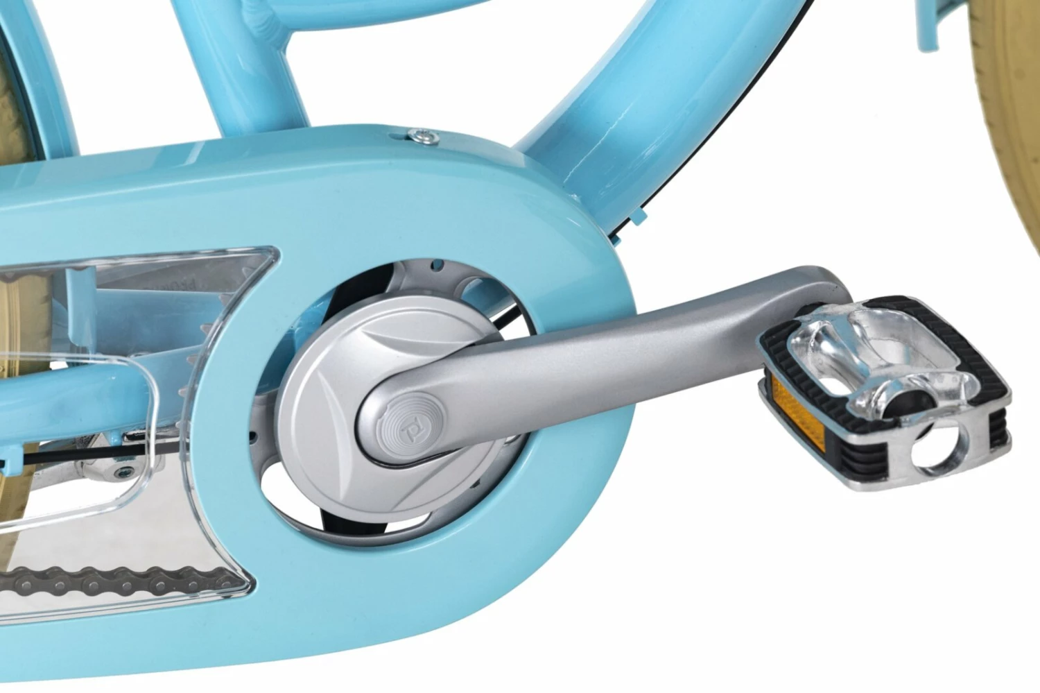Das 24″ Rad im trendigen Hellblau wird dein neuer treuer Begleiter. Der hellblaue Rahmen wird mit Griffen, Reifen und Sattel in Cremefarbe perfekt kombiniert. Mit der 3-Gang-Schaltung von Shimano wird der Schulweg oder die Fahrt ins Schwimmbad komfortabel. Die dynamobetriene Beleuchtung sorgt für sicheres Fahren auch bei Dunkelheit. Auf dem praktischen Gepäckträger hast du ausreichend Platz für Rucksack, Sporttasche etc.