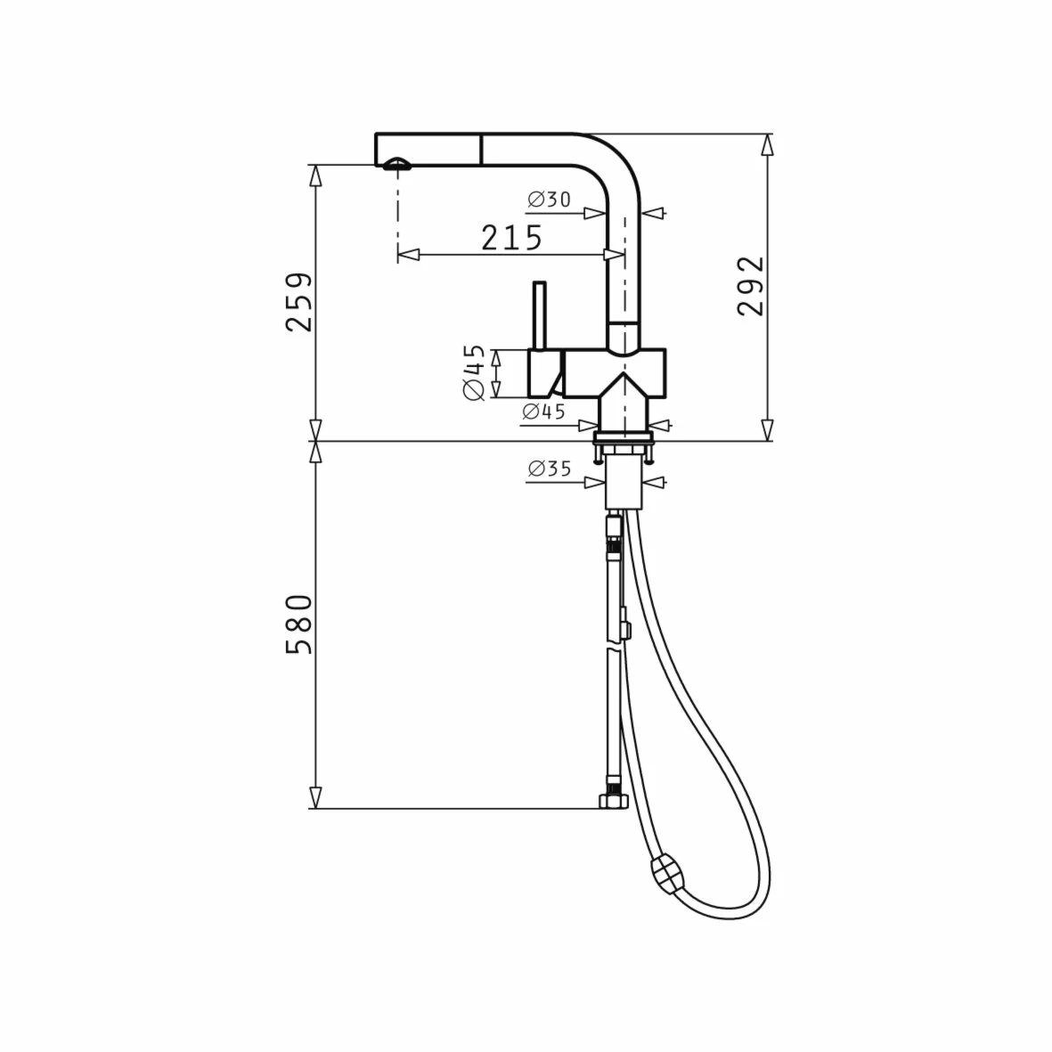 In Edelstahl und mit schwarzem Absatz präsentiert sich die Küchen-Armatur CAPRICCIO. Sie ist für Hochdruck geeignet und der Auslauf ist schwenkbar. Zudem ist diese Armatur mit einer ausziehbaren Schlauchbrause ausgestattet. Im Lieferumfang sind die Keramikkartusche und die Anschlussschläuche mit inbegriffen.
