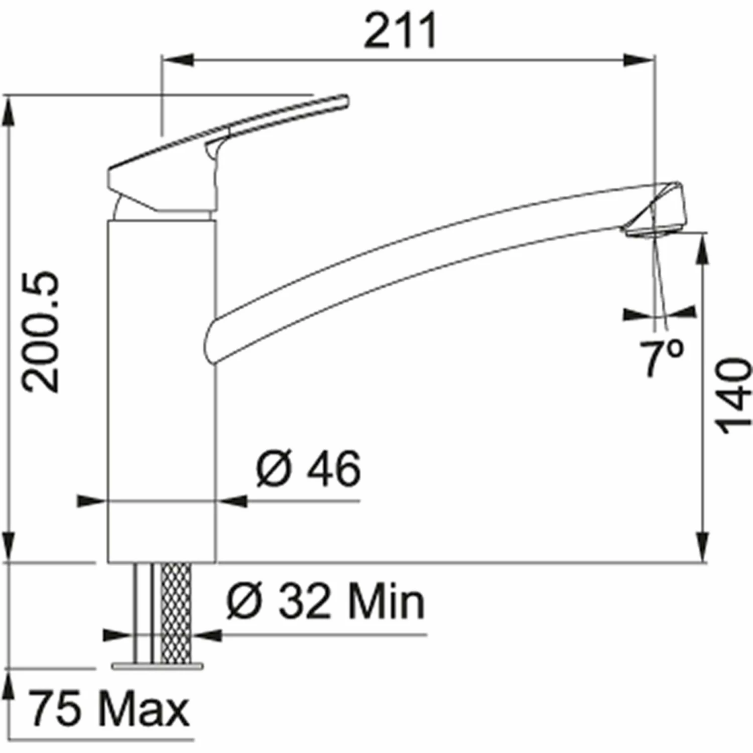 - Höhe Auslauf: ca. 14 cm