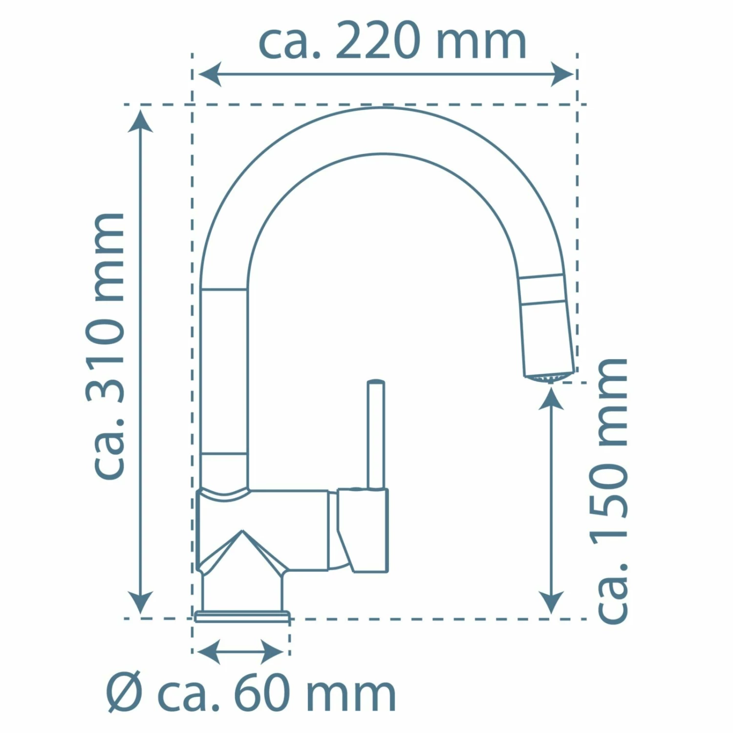 Bogenförmige Küchenarmatur mit LED-Beleuchtung, die je nach Temperatur ihre Farbe wechselt. Je nach Temperatur leuchtet es Blau, Grün oder Rot. Der Aufsatz ist austauschbar, so dass Sie die moderne und formschöne Armatur auch mit einem handelsüblichen Aufsatz benutzen können. Durch einen Kaltwasser-Start bei Griff-Mittelstellung ist die Armatur sehr energiesparend. Mithilfe einer Eco-Kartusche ist sie zudem sehr wassersparend. Bringen Sie jetzt Farbe in Ihre Küche!