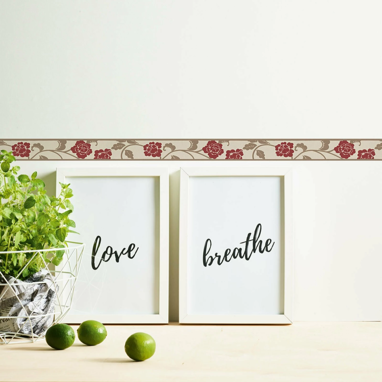 Bordüren lassen sich einfach und schnell verarbeiten und werden im Handumdrehen zu optischen Highlights. In unserem Sortiment haben wir eine große Vielfalt wunderschöner Bordüren für Sie. Diese in der Farbe Rot mit den Maßen 5 Meter x 0,05 Meter wird direkt zu einem Blickfang an Ihrer Wand. Das Trägermaterial besteht aus einem hochwertigen Papier (selbstklebend). Sie ist hoch waschbeständig und gut lichtbeständig.