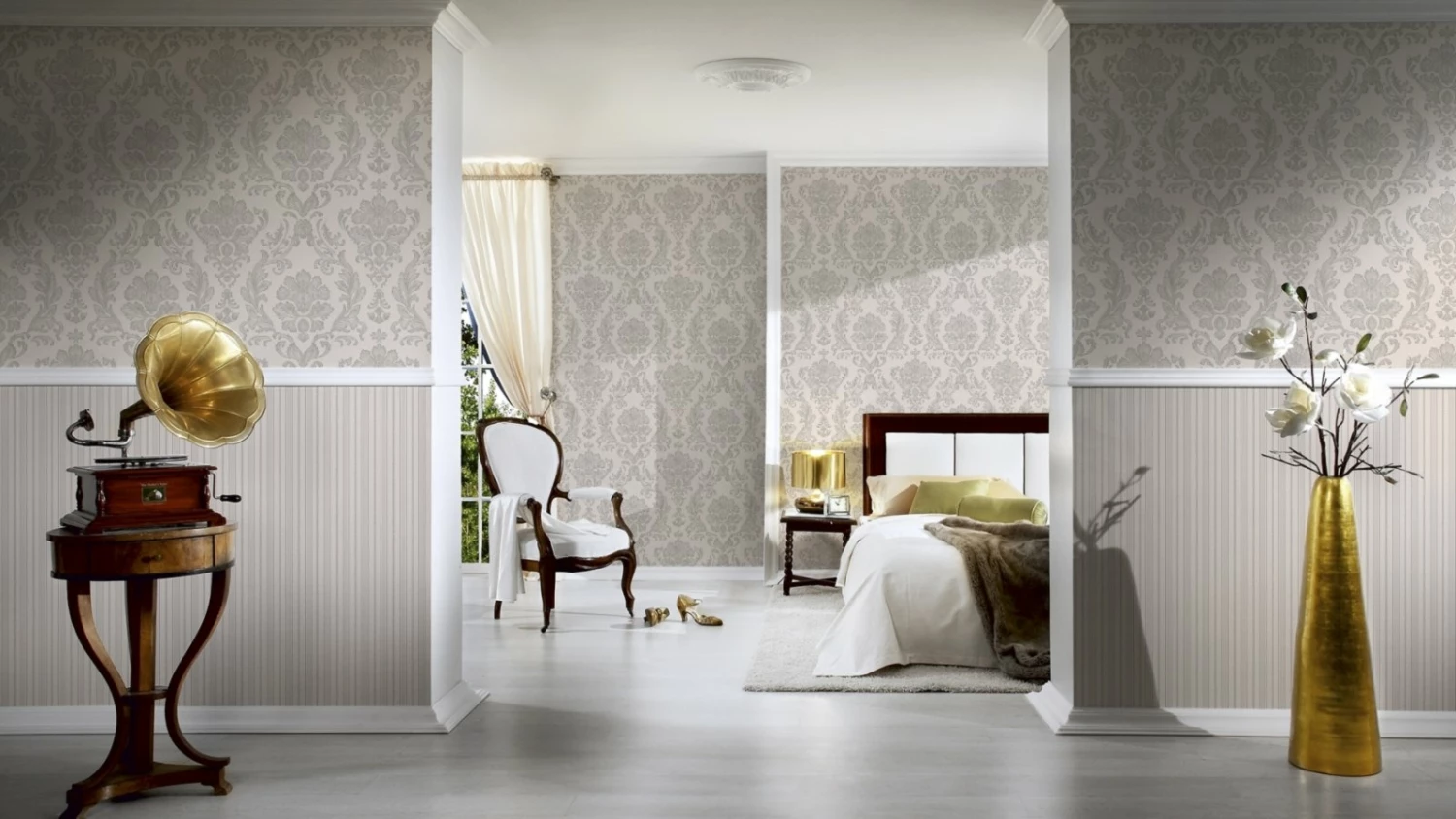 Umweltfreundliche Wanddekoration trifft auf einen Mix aus Blumenranken in Barock-Optik und modernem Damast Muster – das ist die graue Papiertapete aus der Reihe CONCERTO 2. Das üppige Muster in Barock-Optik gibt Ihren Wänden einen einzigartigen Touch und erinnert an das prächtige Flair alter Königs- und Fürstenhäuser.