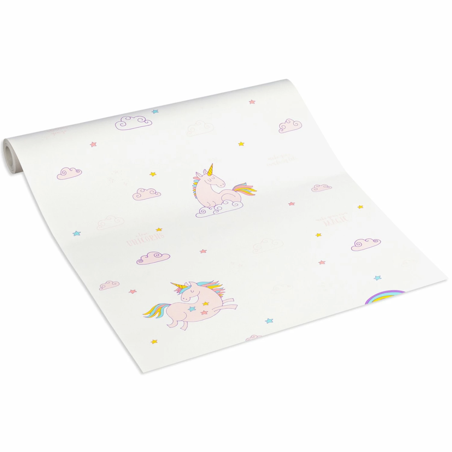 Papiertapete – Einhorn – weiß-rosa – 10 Meter