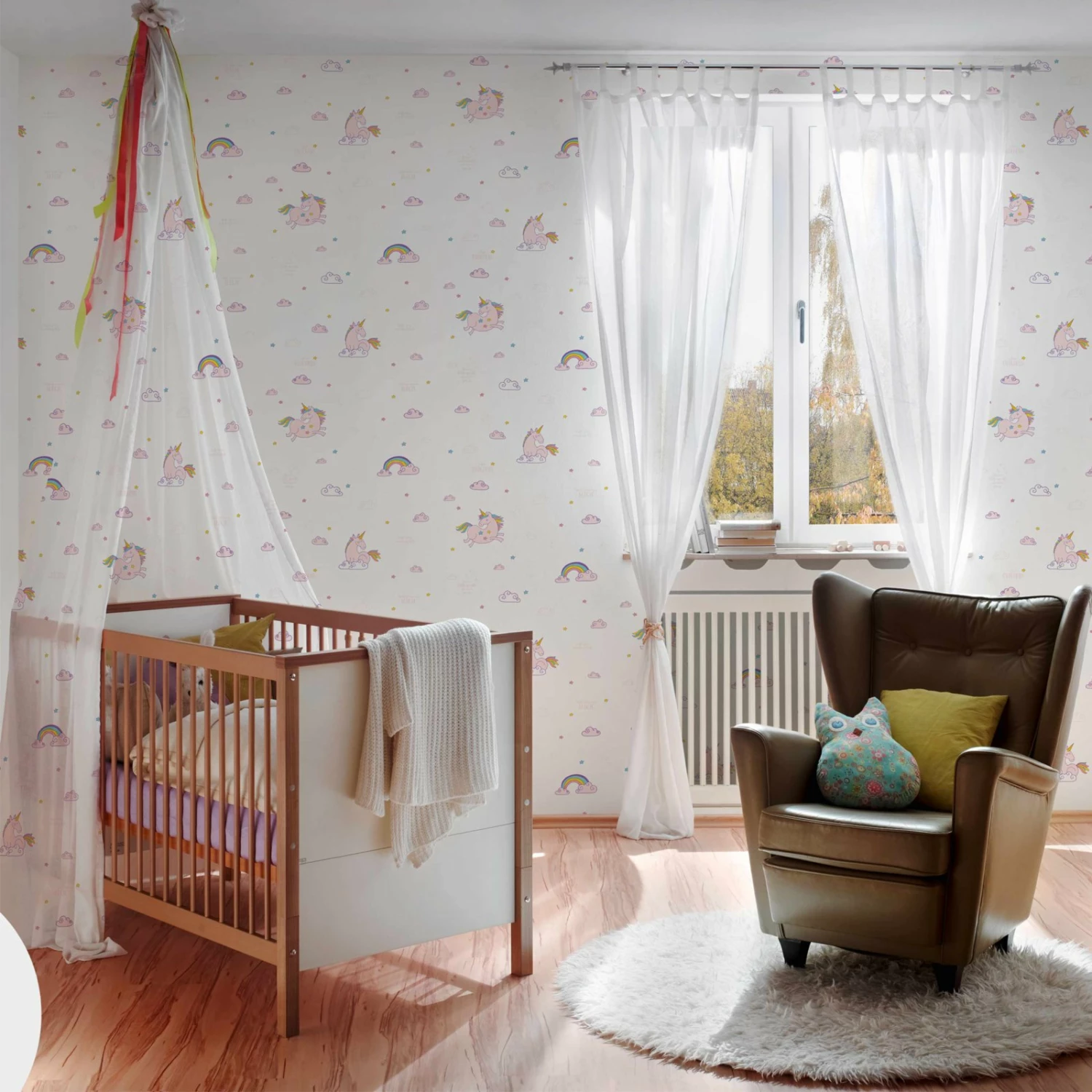 Zaubern Sie Ihrer kleinen Prinzessin zu Hause ein wunderschönes Zimmer mit dieser Einhorn Papiertapete. Tapezieren Sie eine Wand als Highlight oder variieren Sie sie mit rosanen oder weißen Tapetenbahnen, es wird immer traumhaft wirken und jedes Kinderzimmer verschönern.