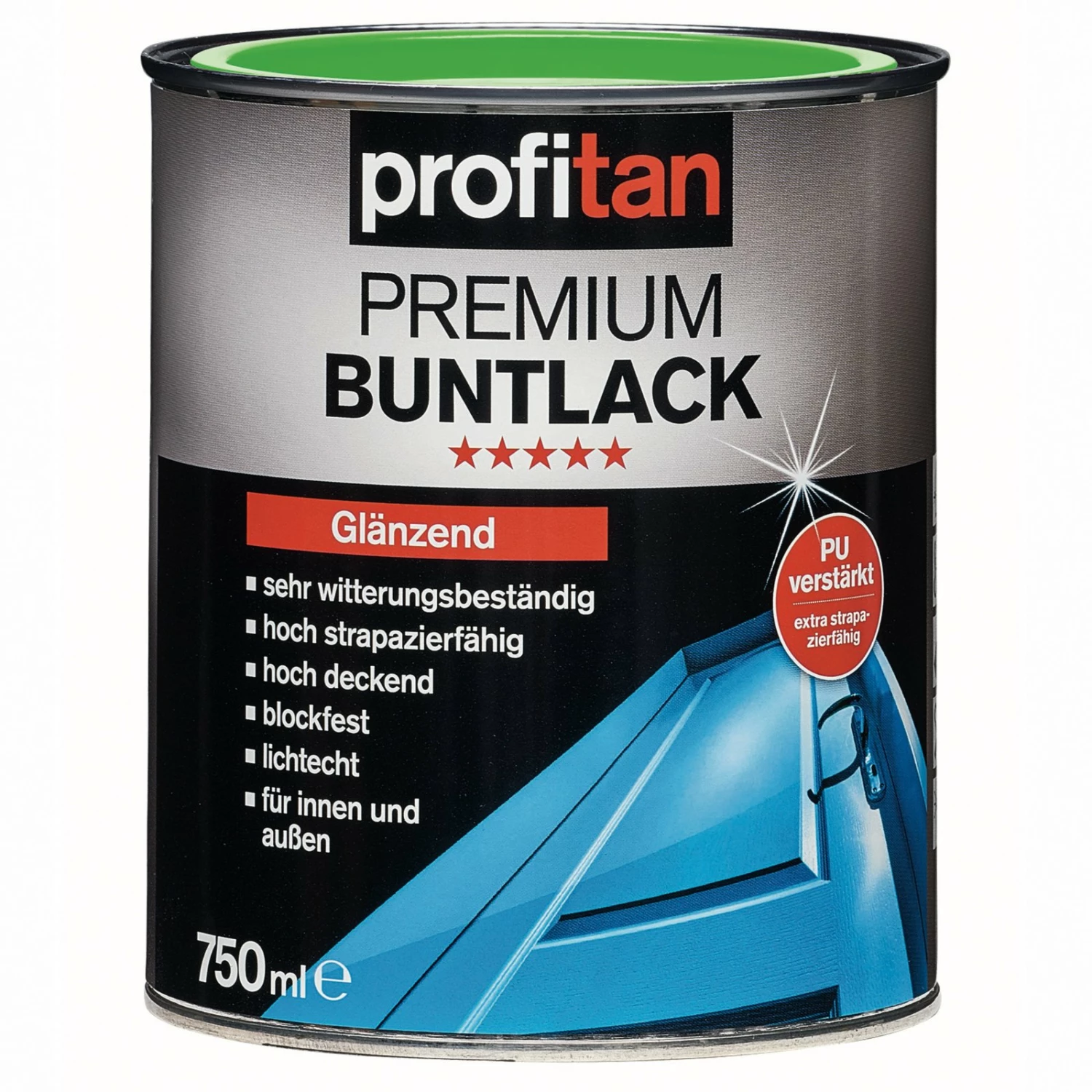 Glänzender Premium Buntlack profitan in einem Caiprinha Farbton für den Innen- und Außenbereich. Dieser Buntlack ist PU verstärkt und so besonders strapazierfähig. Er ist blockfest, also klebt nicht sobald er trocken ist und ist lichtecht.