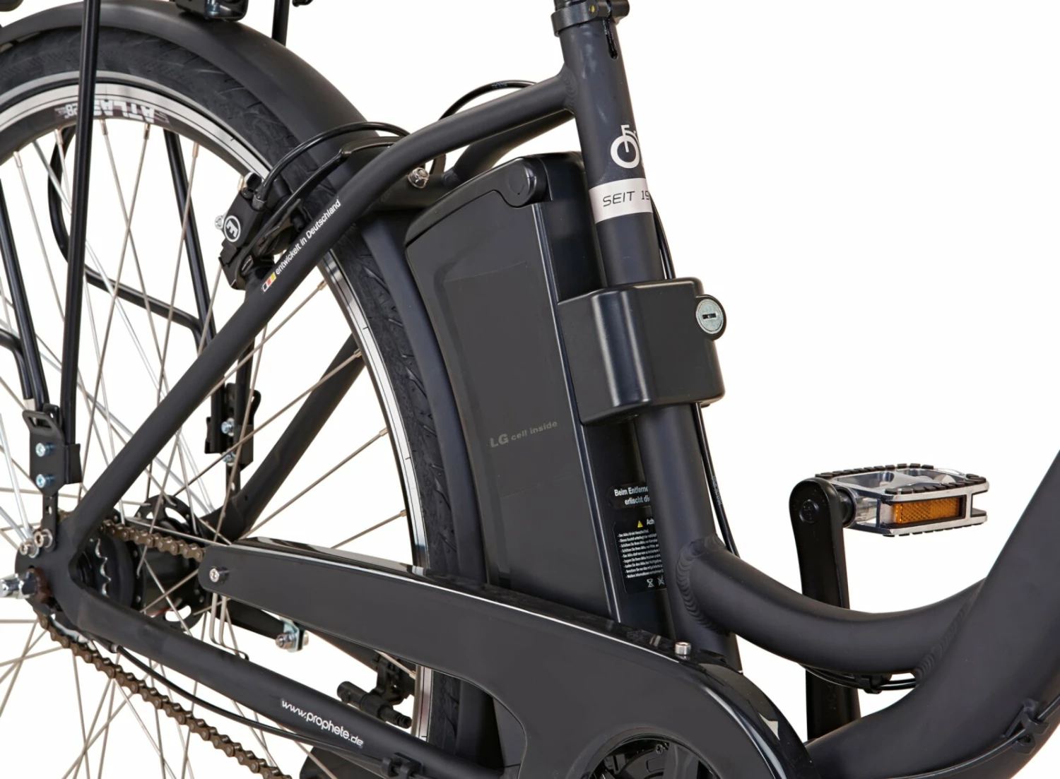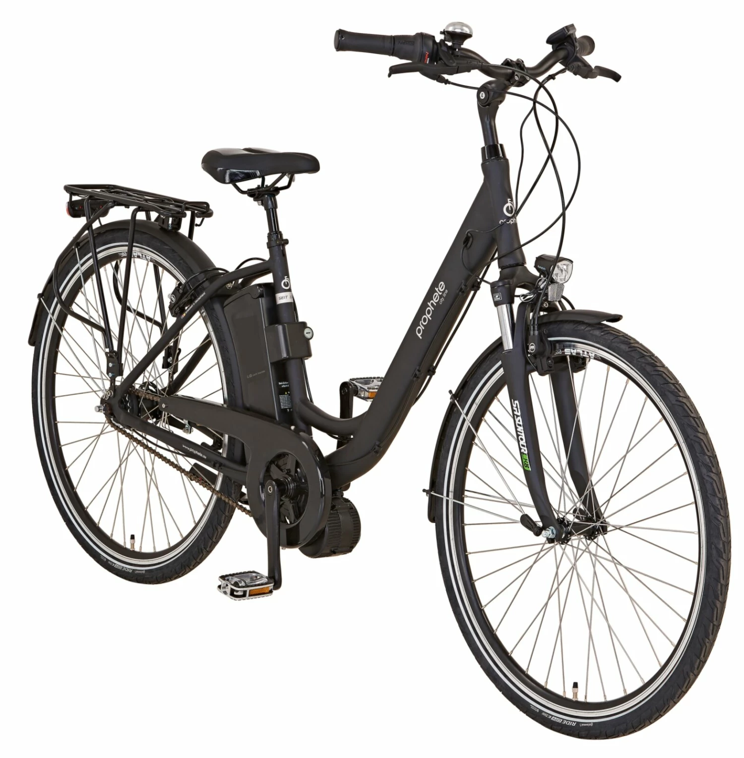 Das „PROPHETE E-Bike Alu City“ in Anthrazit wird dein idealer Begleiter in der City! Zur Arbeit oder zum Einkaufen, mit diesem Bike meisterst du jede Strecke mühelos. Mit dem 250-Watt starken Akku kommst du je nach Fahrweise 140 Kilometer weit und innerhalb von 4-6 Stunden ist der Akku wieder aufgeladen. Für die wichtige Verzögerung sorgt die hydraulischen Felgenbremse. Zudem ist das E-Bike mit einer 7-Gang-Nabenschaltung ausgestattet, somit stellen hügelige Touren ebenfalls kein Problem mehr dar. Dank der LED-Beleuchtung ermöglicht auch Fahrten zur späten Zeit. Das LCD-Display zeigt alle wichtigen Informationen und sitzt direkt neben dem linken Griff, somit ist das betätigen ohne den Lenker loszulassen problemos möglich.