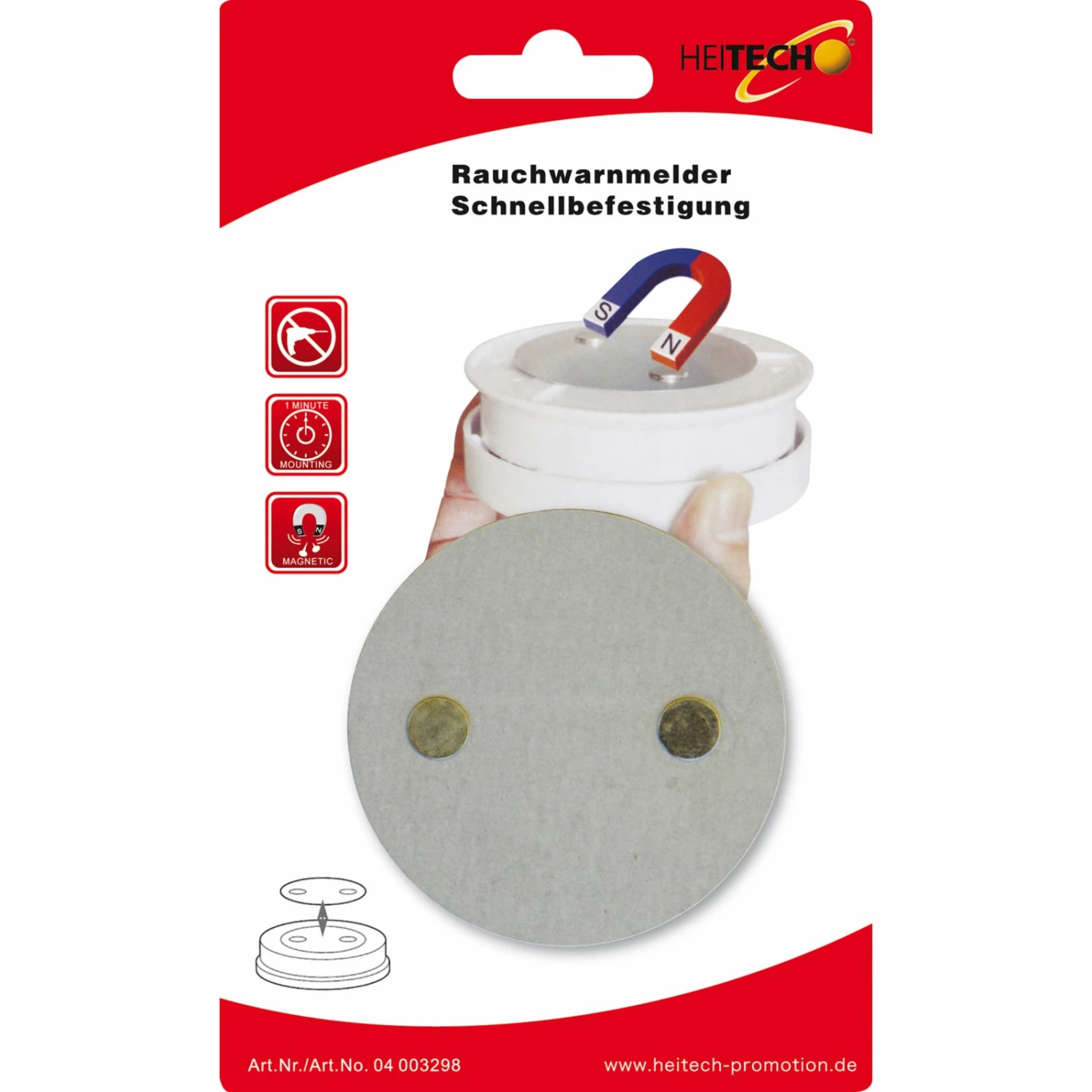Dieses Befestigungssystem besteht aus einem selbstklebenden Element zur Befestigung an der Decke und einem selbstklebenden Grundelement mit Magneten zur Befestigung am Rauchwarn-Melder.