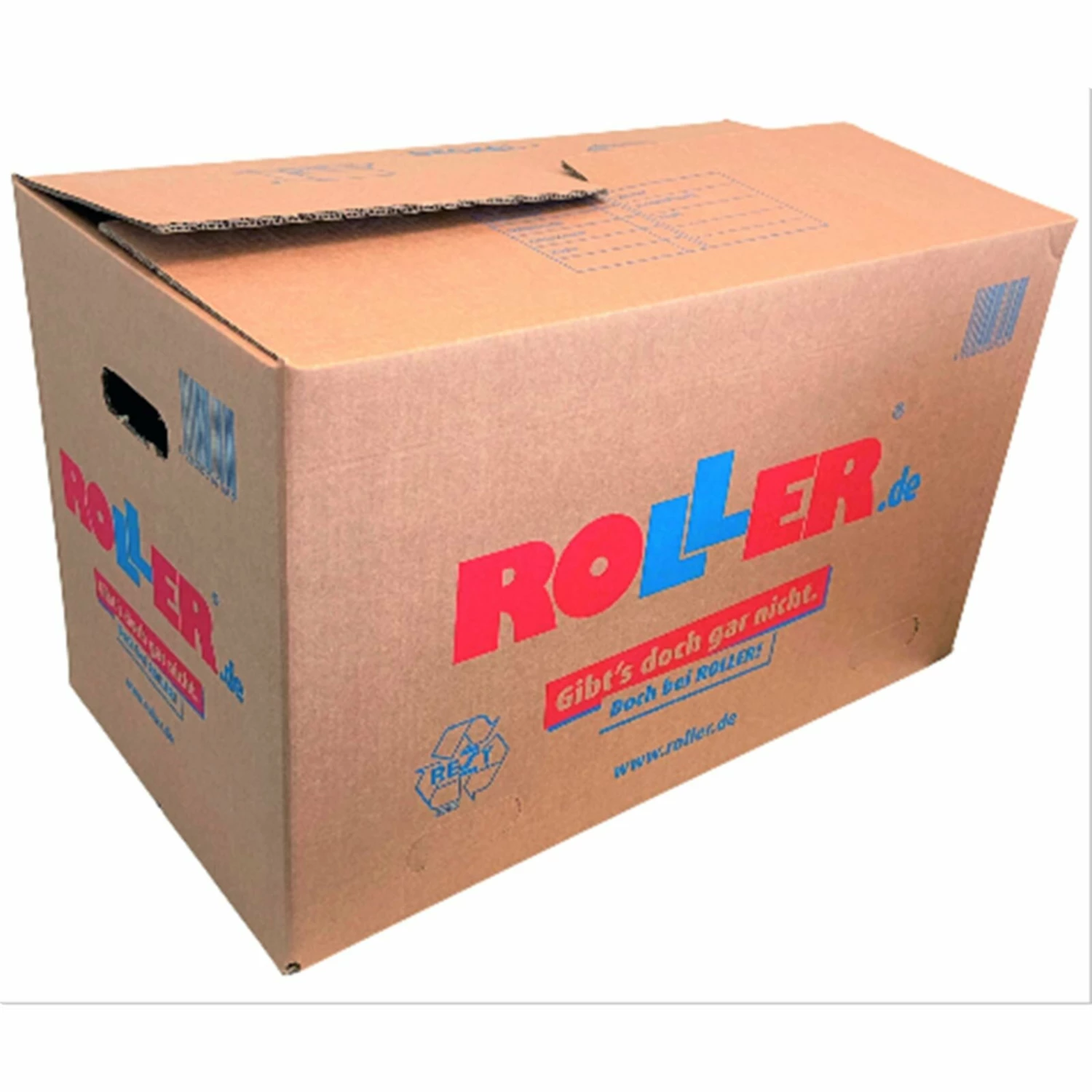 ROLLER Umzugskarton – rot-blau bedruckt – 65×35 cm