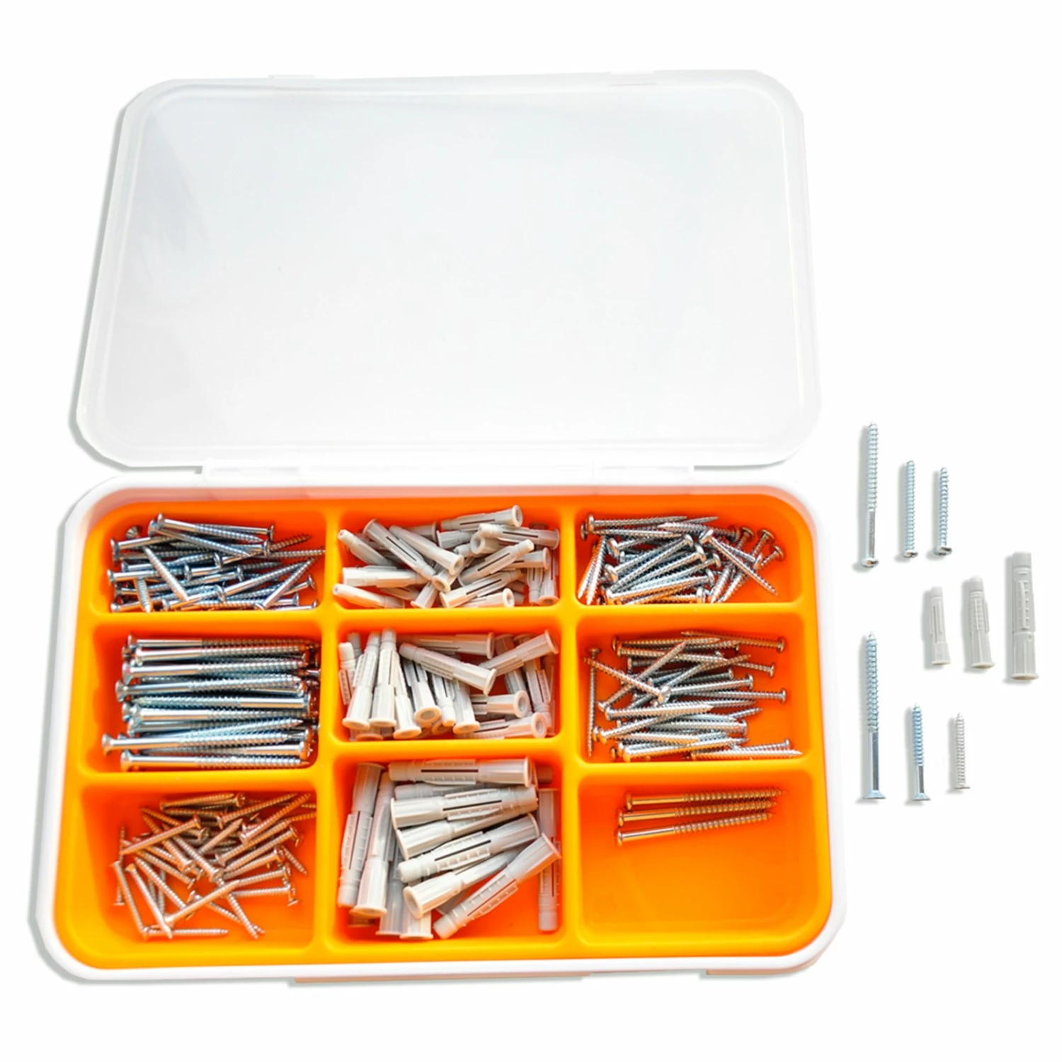 Das 270-teilige Schrauben- und Dübelsortiment stattet Sie für heimische Handwerkertätigkeiten optimal aus.