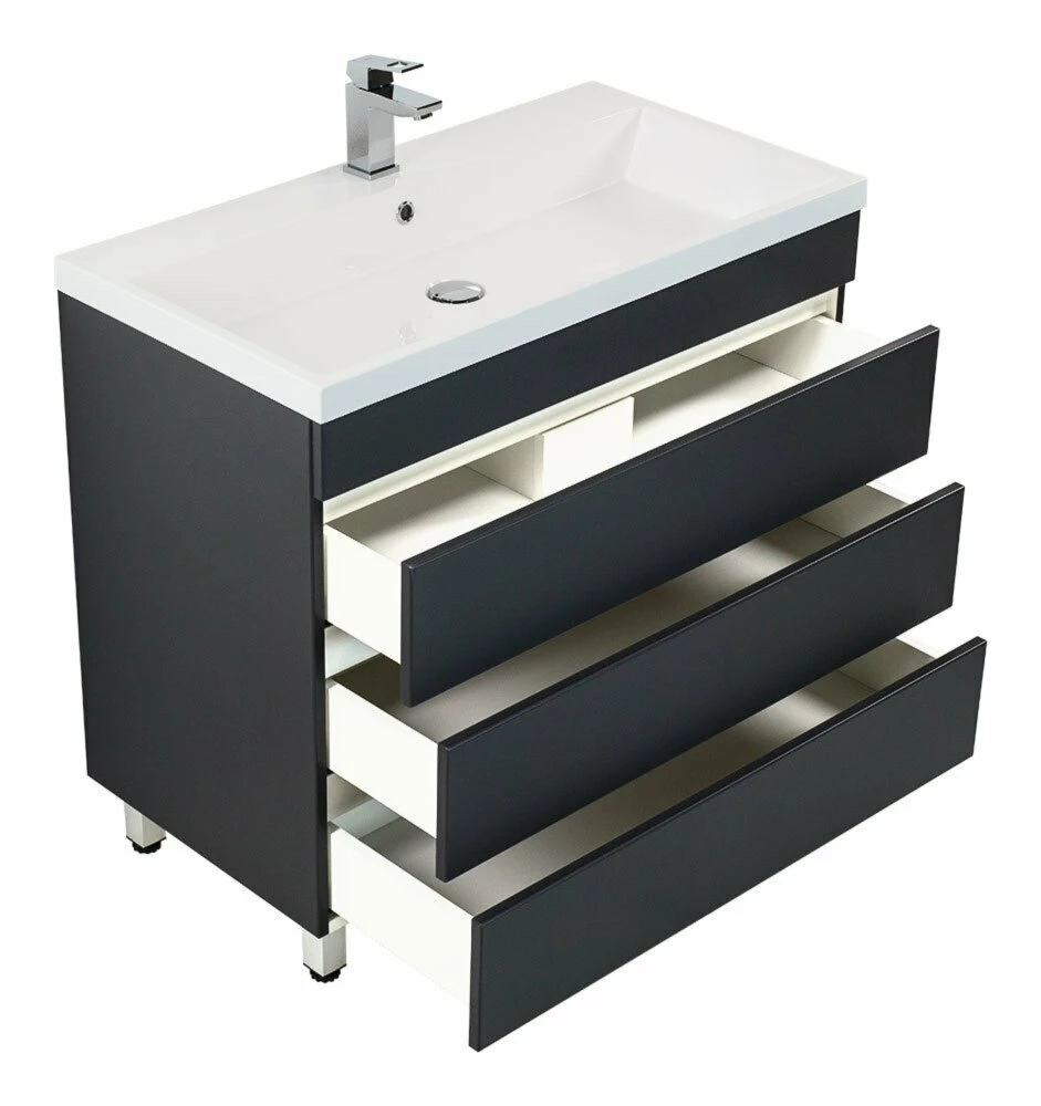 Stand-Waschtisch FELINI – anthrazit seidenglanz-anthrazit – grifflos – 90 cm