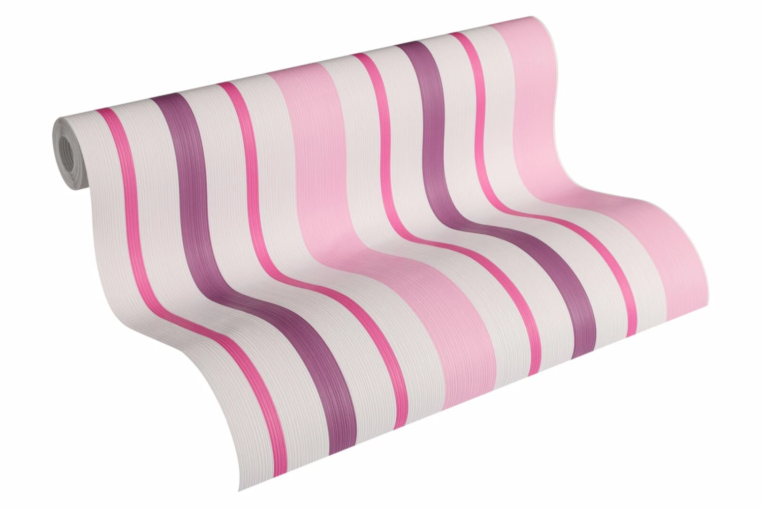 Diese rosa und pink gestreifte Tapete BOYS & GIRLS 5 peppt jedes Mädchen-Zimmer auf. Der Rapport ist ansatzfrei, so können Sie sie ohne Verschnitt anbringen.